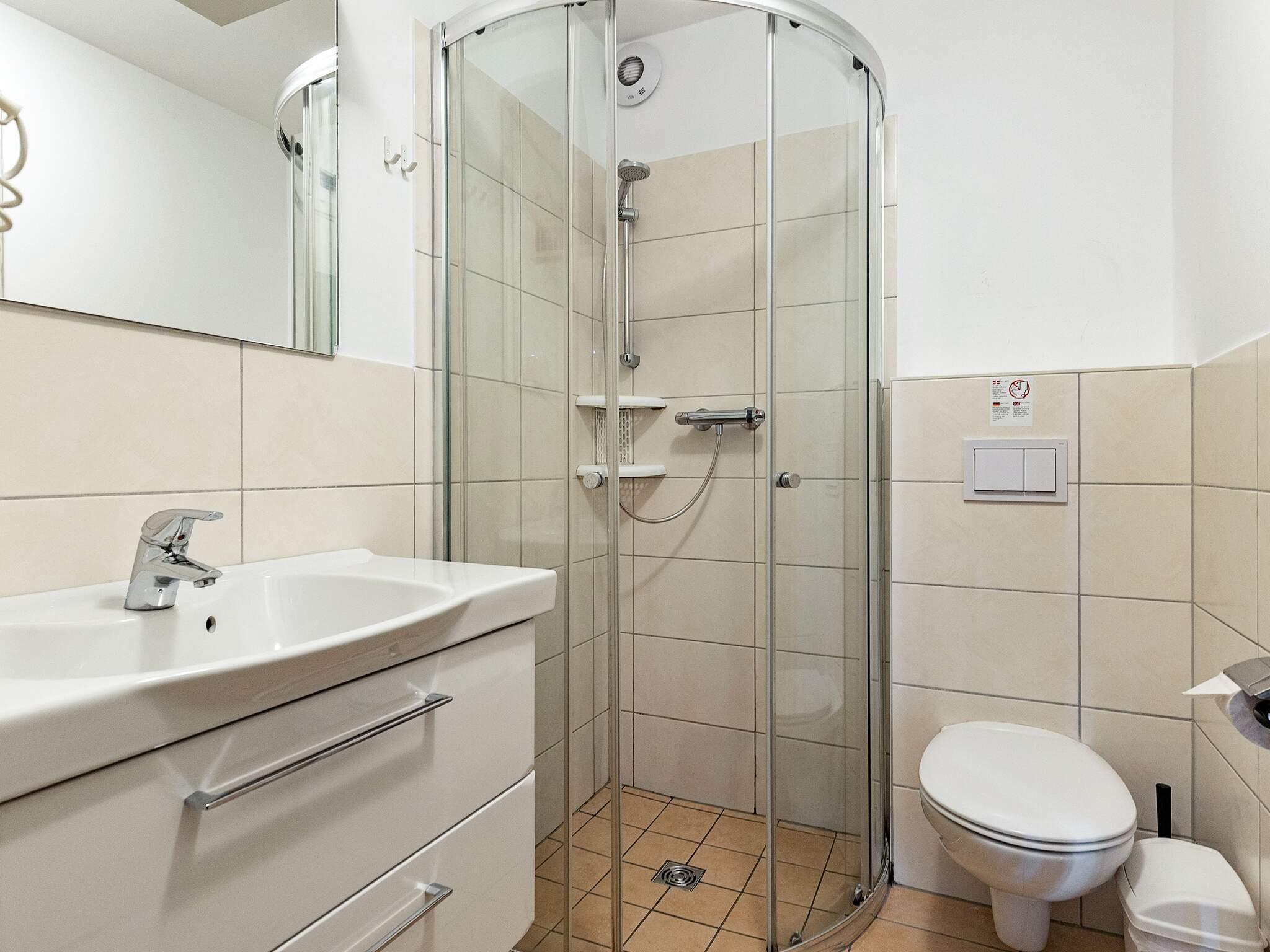 Bad: WC, Waschb., Dusche, Fußbodenheiz.