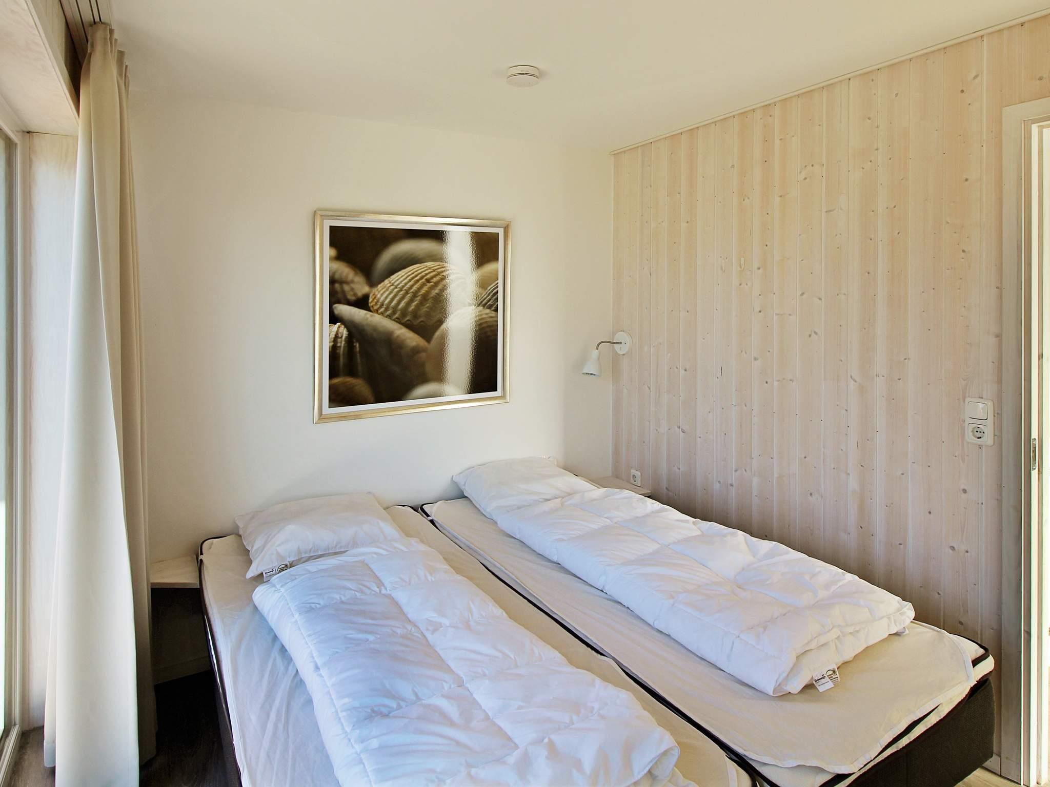 Im Erdgeschoss befinden sich zwei einladende Schlafzimmer und ein Badezimmer mit Dusche, Fußbodenheizung und sogar einer eigenen Sauna – perfekt nach einem langen Strandspaziergang. Sowohl vom Flur als auch von den Schlafzimmern aus führen Türen direkt auf die Terrasse, wo Sie die frische Fjordluft genießen können. Im Obergeschoss erwartet Sie das Herzstück des Hauses: eine lichtdurchflutete Küche und ein Wohnbereich mit herrlichem Blick auf die Umgebung. Treten Sie auf die Loggia hinaus, um die vorbeifahrenden Schiffe auf dem Wasser zu beobachten – ein Fernglas steht sogar zur Verfügung, um das Erlebnis noch besonderer zu machen.