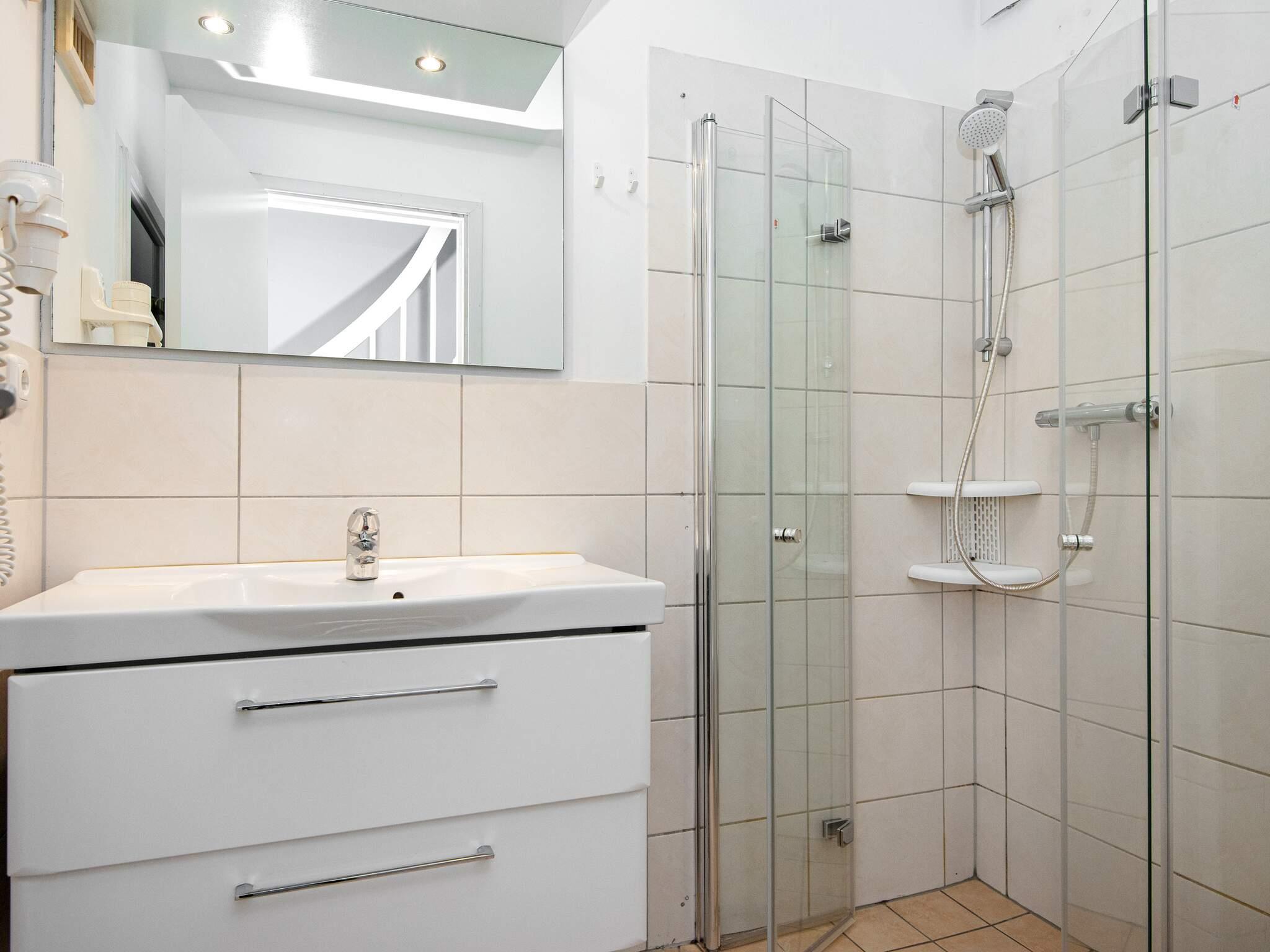 Bad: WC, Waschb., Dusche, Fußbodenheiz.