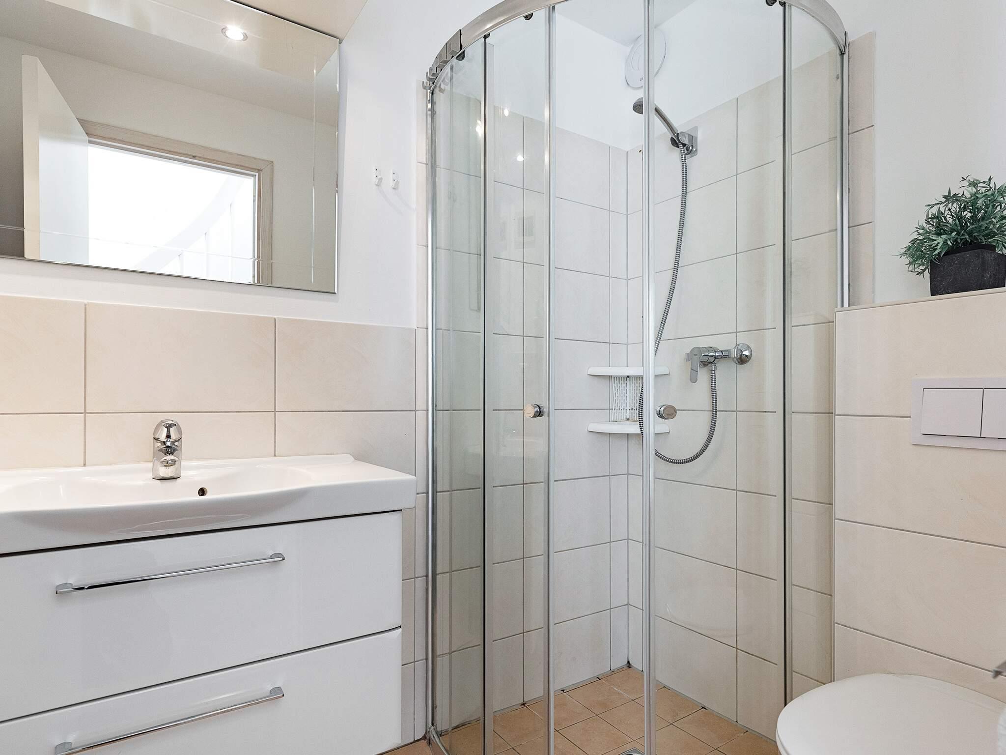 Bad: WC, Waschb., Dusche, Fußbodenheiz.