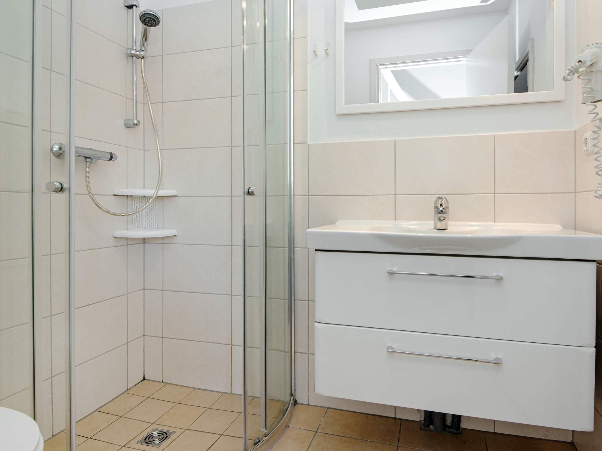 Bad: WC, Waschb., Dusche, Fußbodenheiz.