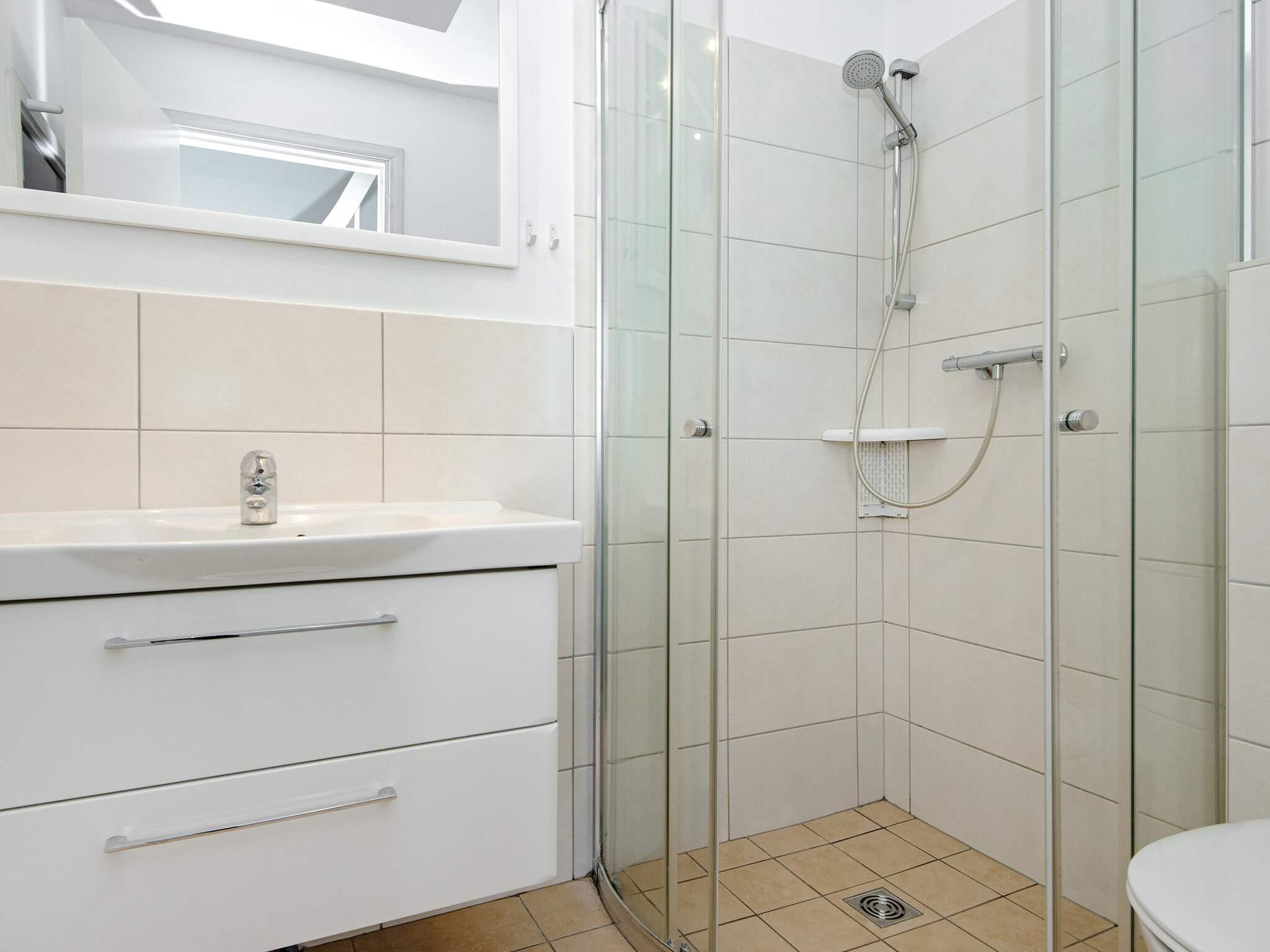 Bad: WC, Waschb., Dusche, Fußbodenheiz.