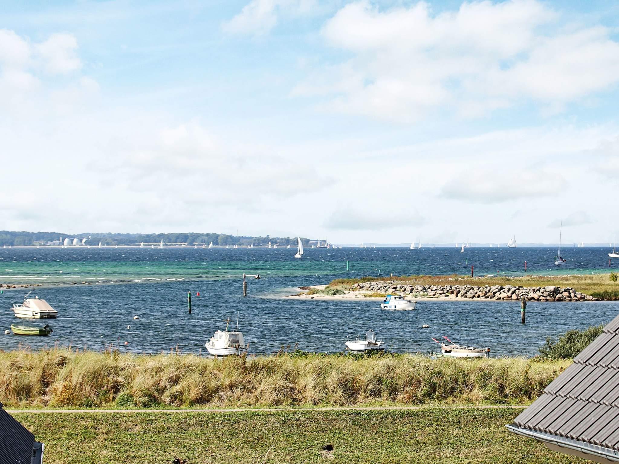 Im Erdgeschoss gibt es zwei Schlafzimmer und ein Bad mit Dusche, Fußbodenheizung und Sauna. Sowohl vom Flur als auch von den Schlafzimmern gelangen Sie auf die Terrasse. Eine Treppe führt in die obere Etage, in der sich der Küchen-/Aufenthaltsbereich befindet, von dem aus Sie einen herrlichen Blick auf die Umgebung haben. Noch schöner ist der Blick von der Loggia, auf der Sie geschützt im Freien sitzen können. Nutzen Sie das Fernglas, um den Schiffsverkehr zu beobachten.