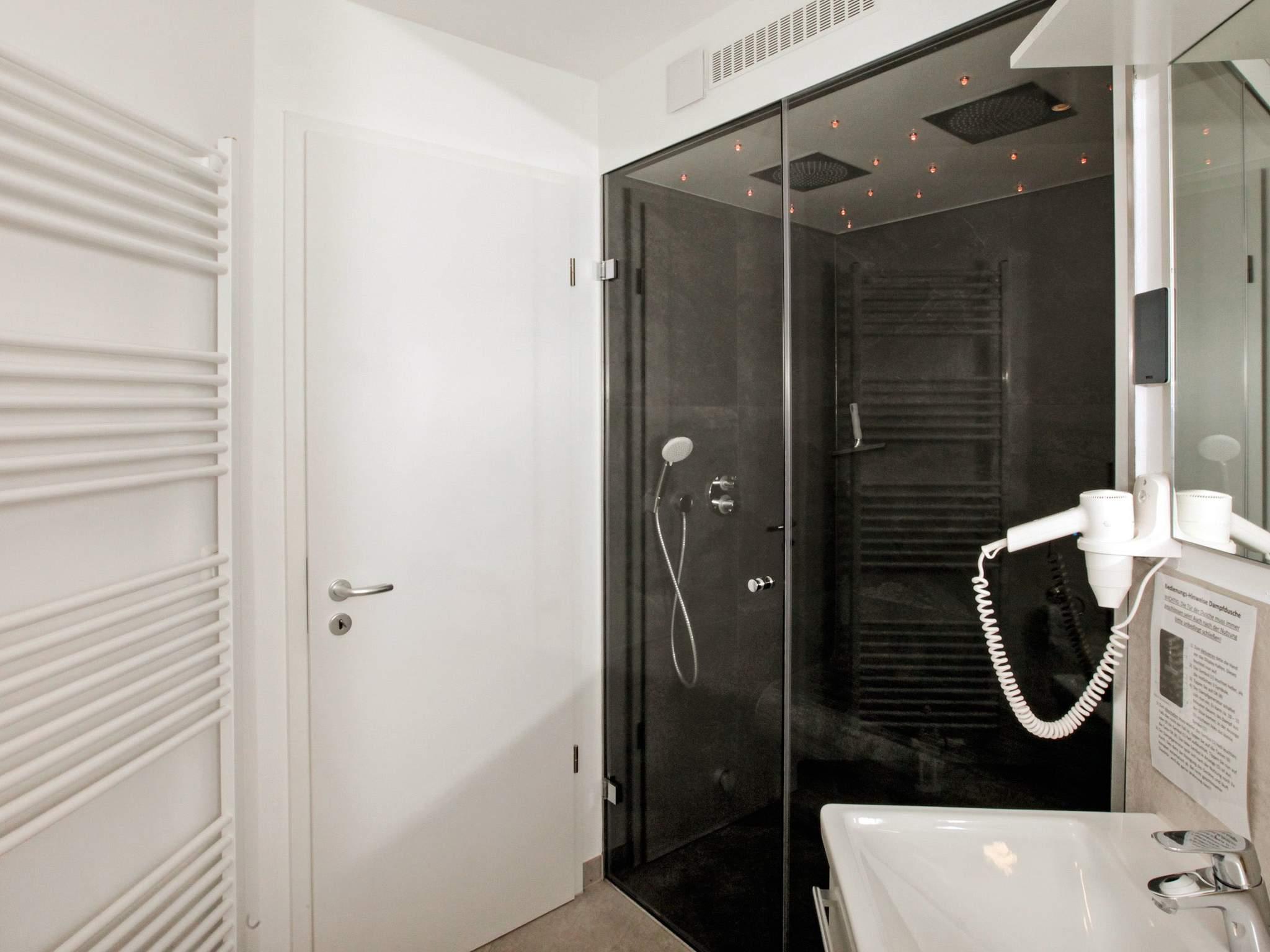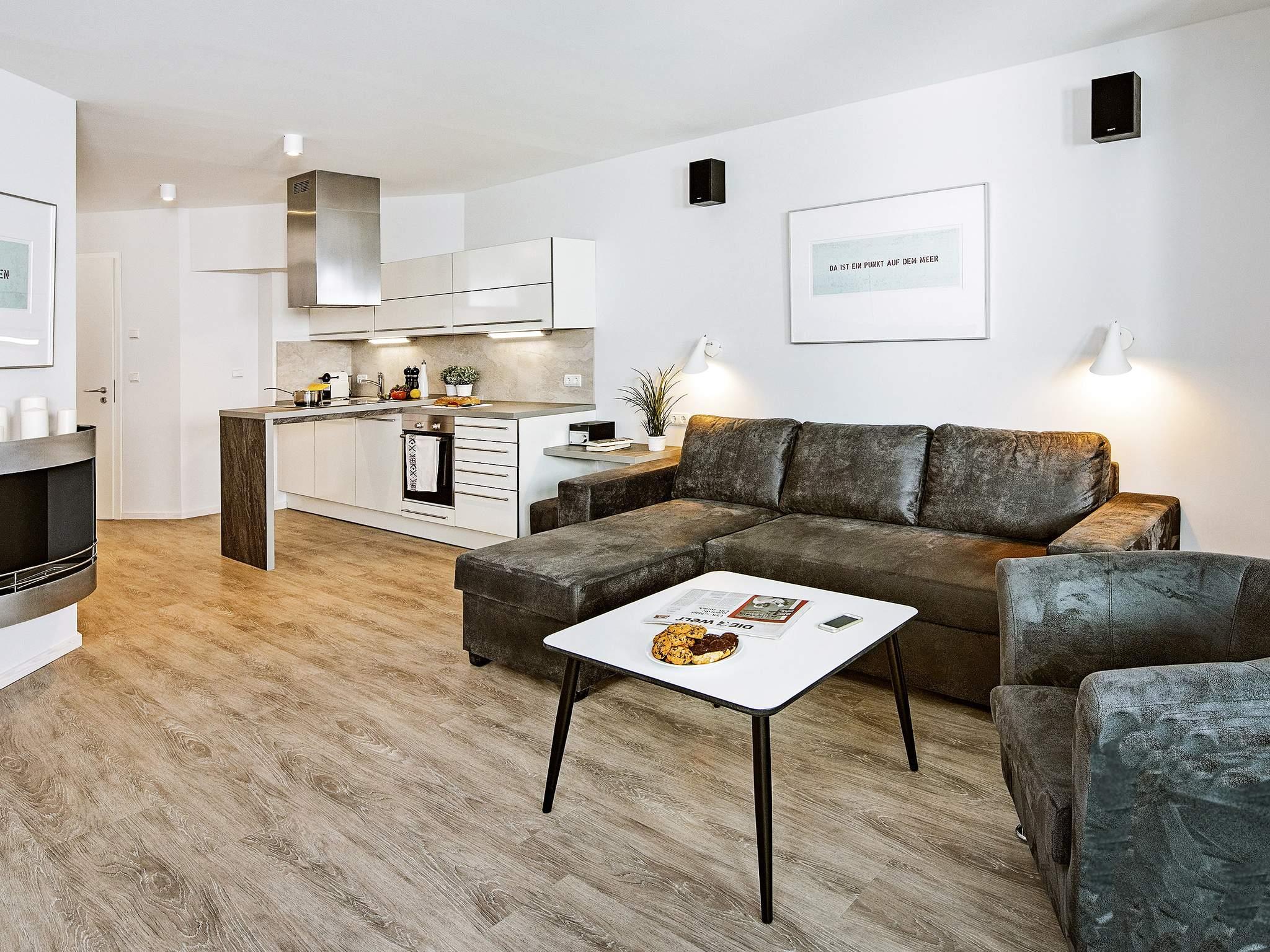 Die Wohnung besteht aus einem einladenden Küchen-Wohnbereich mit Ausgang zum Balkon, zwei Schlafzimmern mit Doppelbett und einem Badezimmer mit u.a. Doppel-Regendusche mit Dampfbad-Funktion - für das besondere Bade-Feeling. Nicht nur im Wohnzimmer, sondern auch in den beiden Schlafzimmern erwartet Sie ein Fernseher. Im Wohnzimmer gibt es auch noch eine Schlafcouch, einen Blu-Ray-Player und eine Musikanlage mit CD-Spieler, außerdem ist ein gemütlicher Bioethanolkamin vorhanden. Natürlich ist die Wohnung bequem mit dem Fahrstuhl erreichbar.