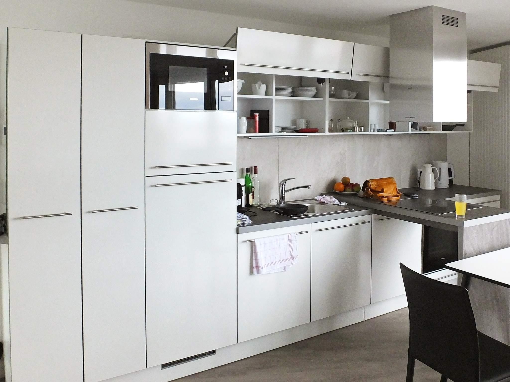 Off. Küche: E-Herd, Kühl-Gefrier-Kombi, Mikrow., Abzugsh., Kaffeem., Spülm.