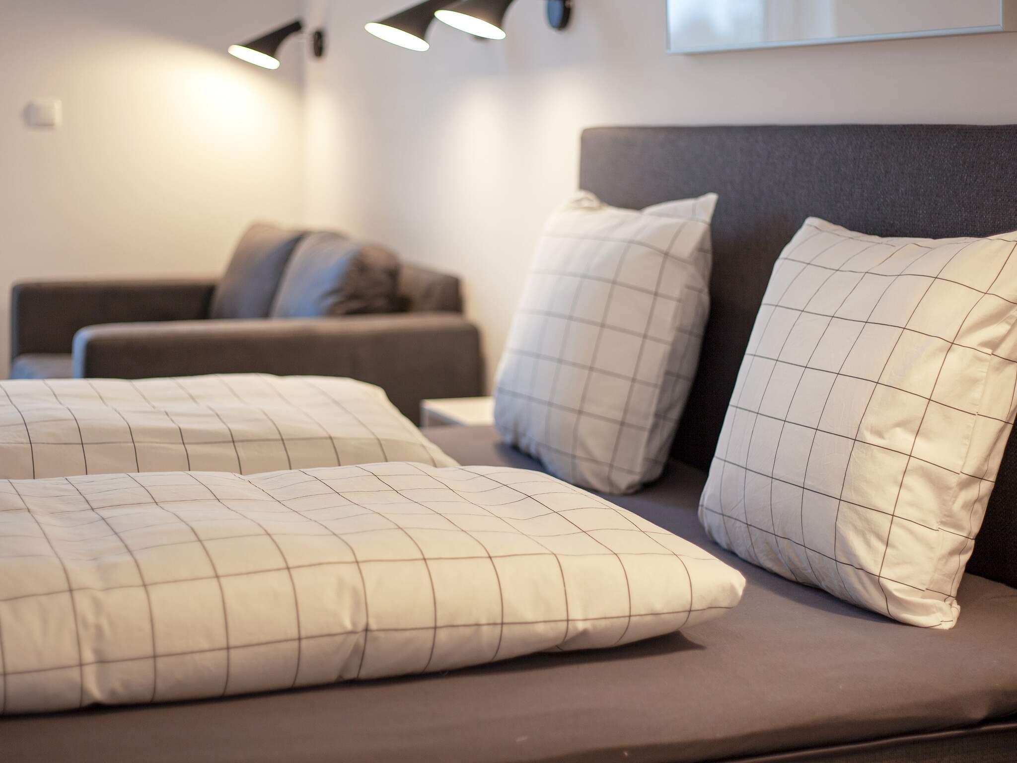 Zur Unterhaltung stehen Ihnen ein Fernseher mit Blu-Ray-Player, eine Soundbar mit Bluetooth-Anbindung sowie ein Bioethanolkamin für gemütliche Abende zur Verfügung. Die Wohnung verfügt über drei Schlafzimmer, jeweils mit einem Doppelbett und einem eigenen Flachbildfernseher.