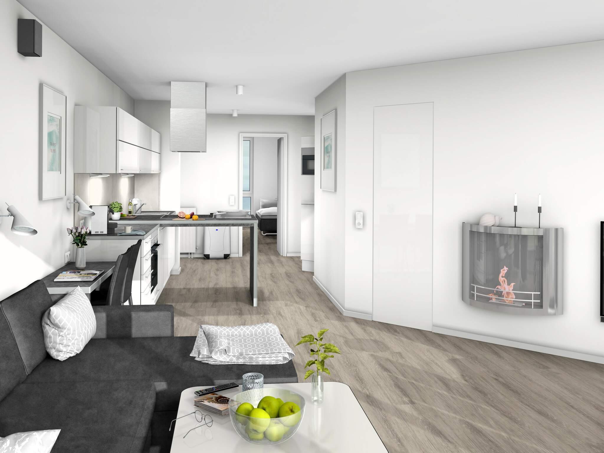 Da es sich um eine Serie mit mehreren identischen Wohnungen handelt, kann die Einrichtung variieren. Modellbilder.