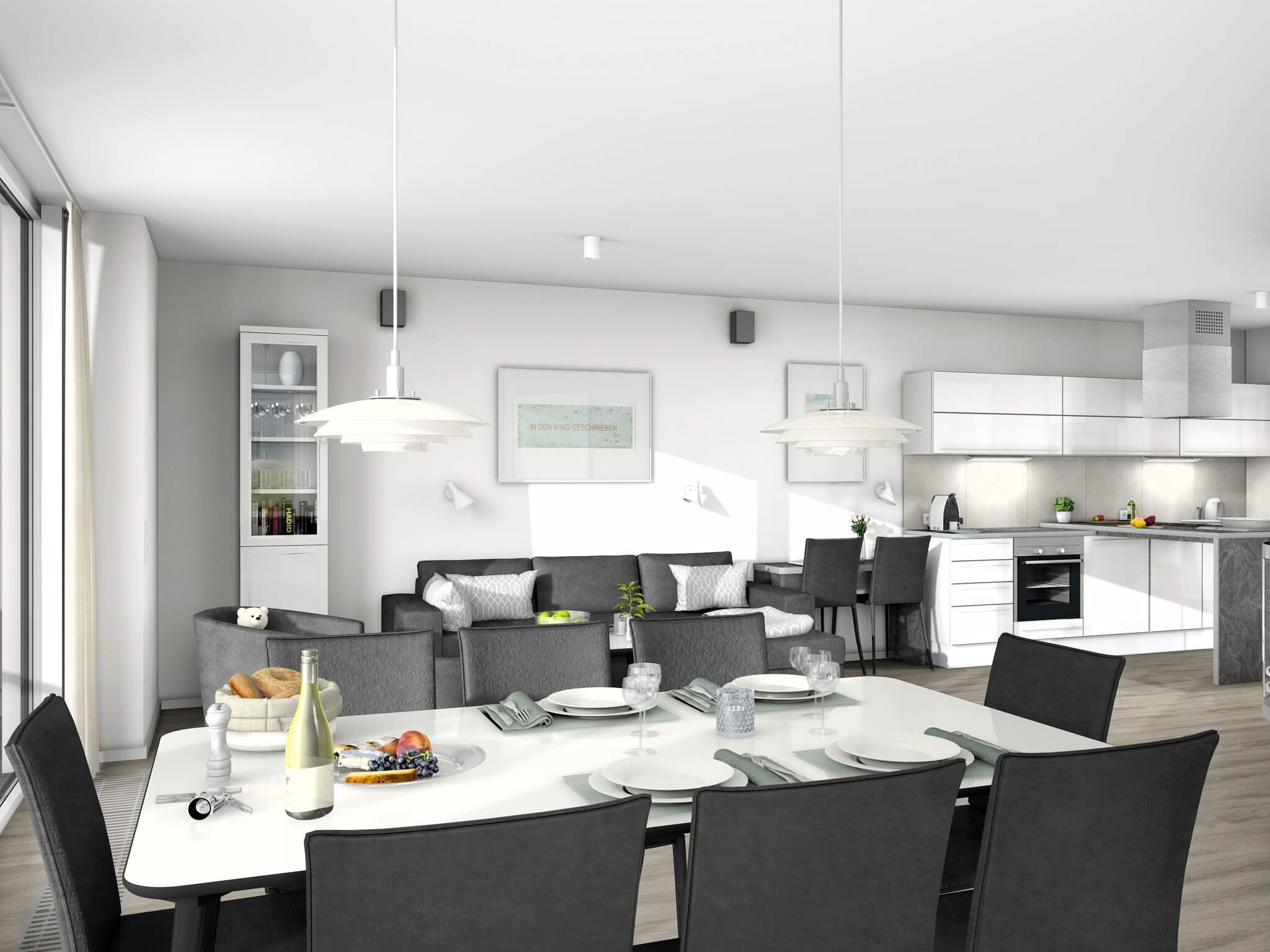 Moderne und komfortable Ferienwohnung direkt auf dem Wasser mit einem traumhaften Panorama Ausblick. Die Wasservillen bieten einen unvergesslichen Blick auf die Ostsee und den Yachthafen von früh bis abends.