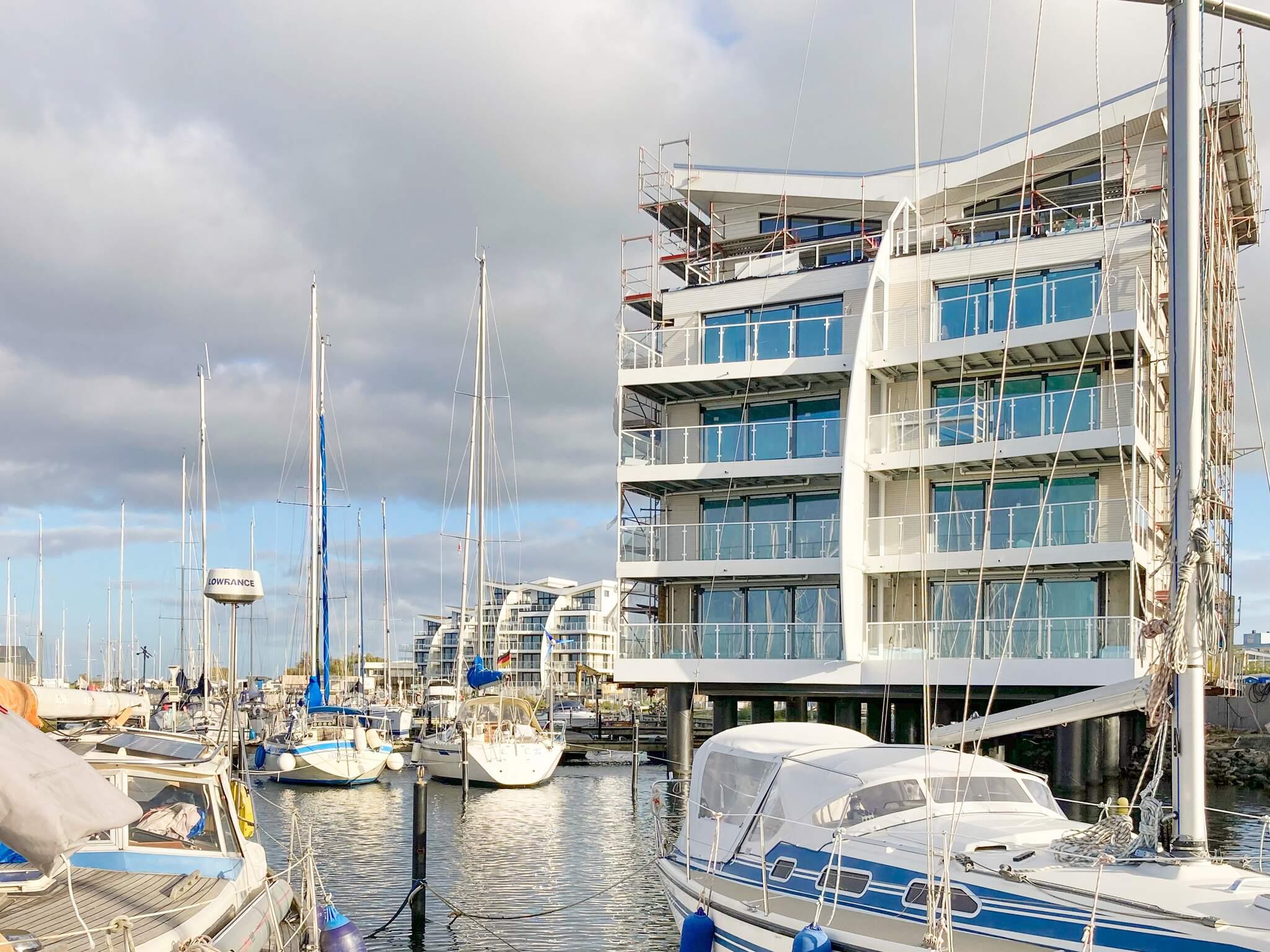 Moderne und komfortable Ferienwohnung direkt auf dem Wasser mit einem traumhaften Panorama Ausblick. Die Wasservillen bieten einen unvergesslichen Blick auf die Ostsee und den Yachthafen von früh bis abends.