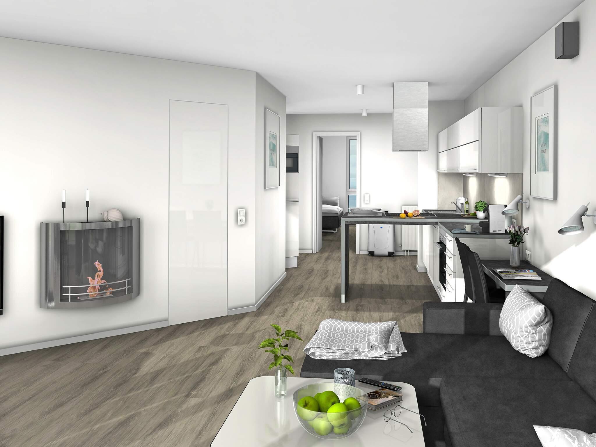 Da es sich um eine Serie mit mehreren identischen Wohnungen handelt, kann die Einrichtung variieren. Modellbilder.