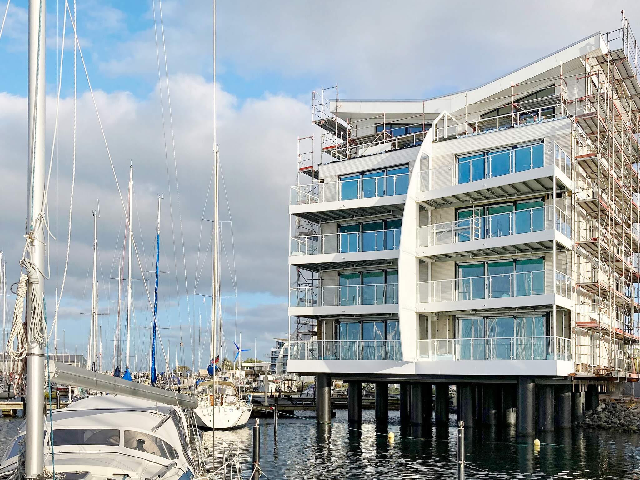 Moderne und komfortable Ferienwohnung direkt auf dem Wasser mit einem traumhaften Panorama Ausblick. Die Wasservillen bieten einen unvergesslichen Blick auf die Ostsee und den Yachthafen von früh bis abends.