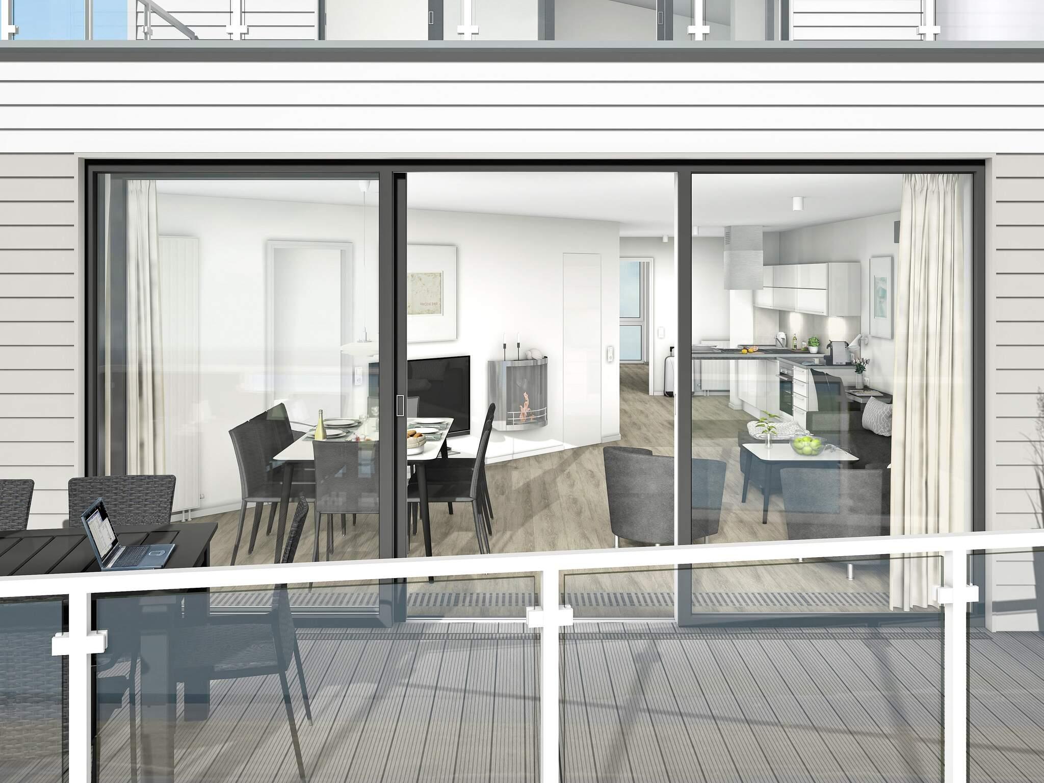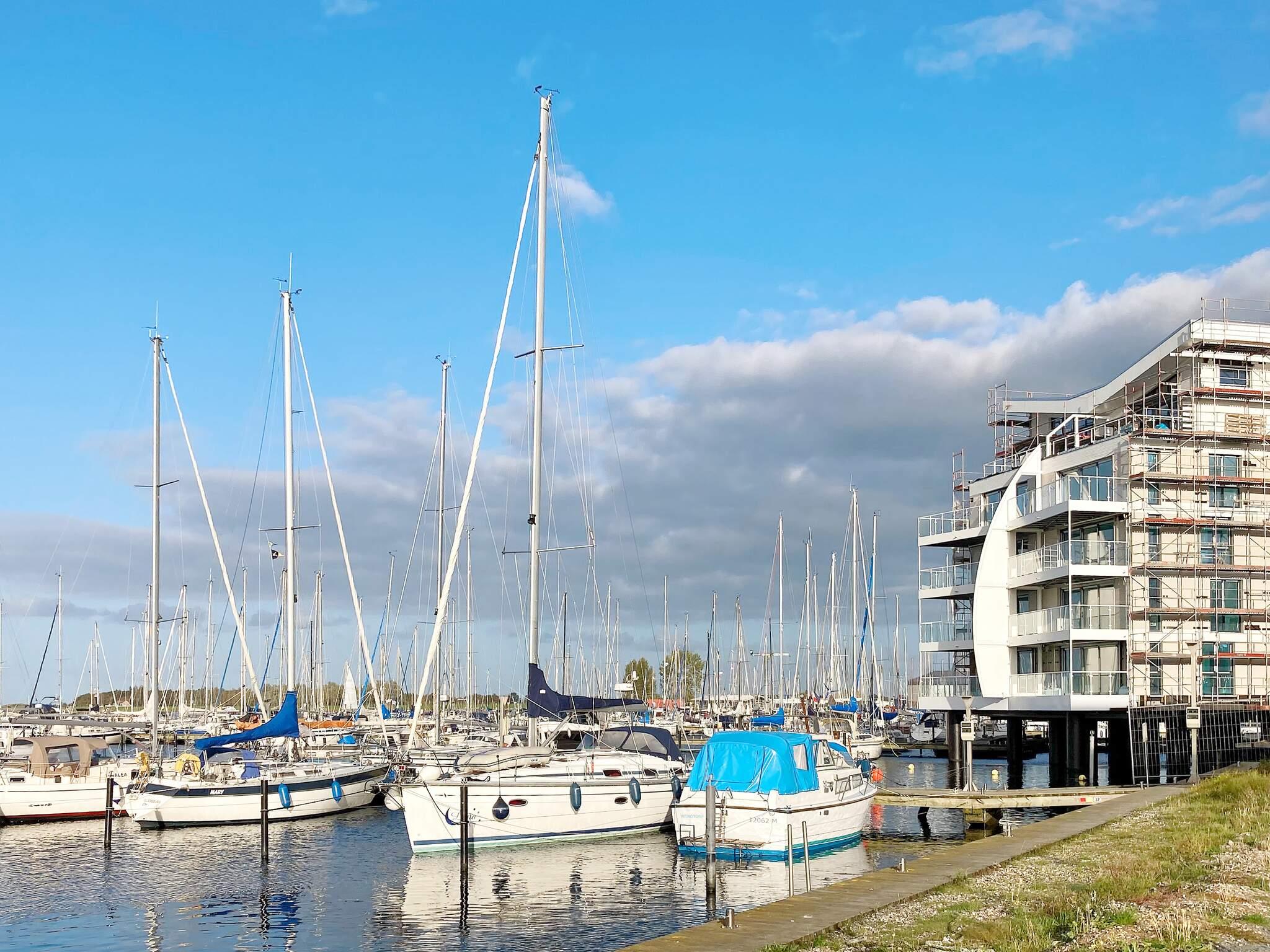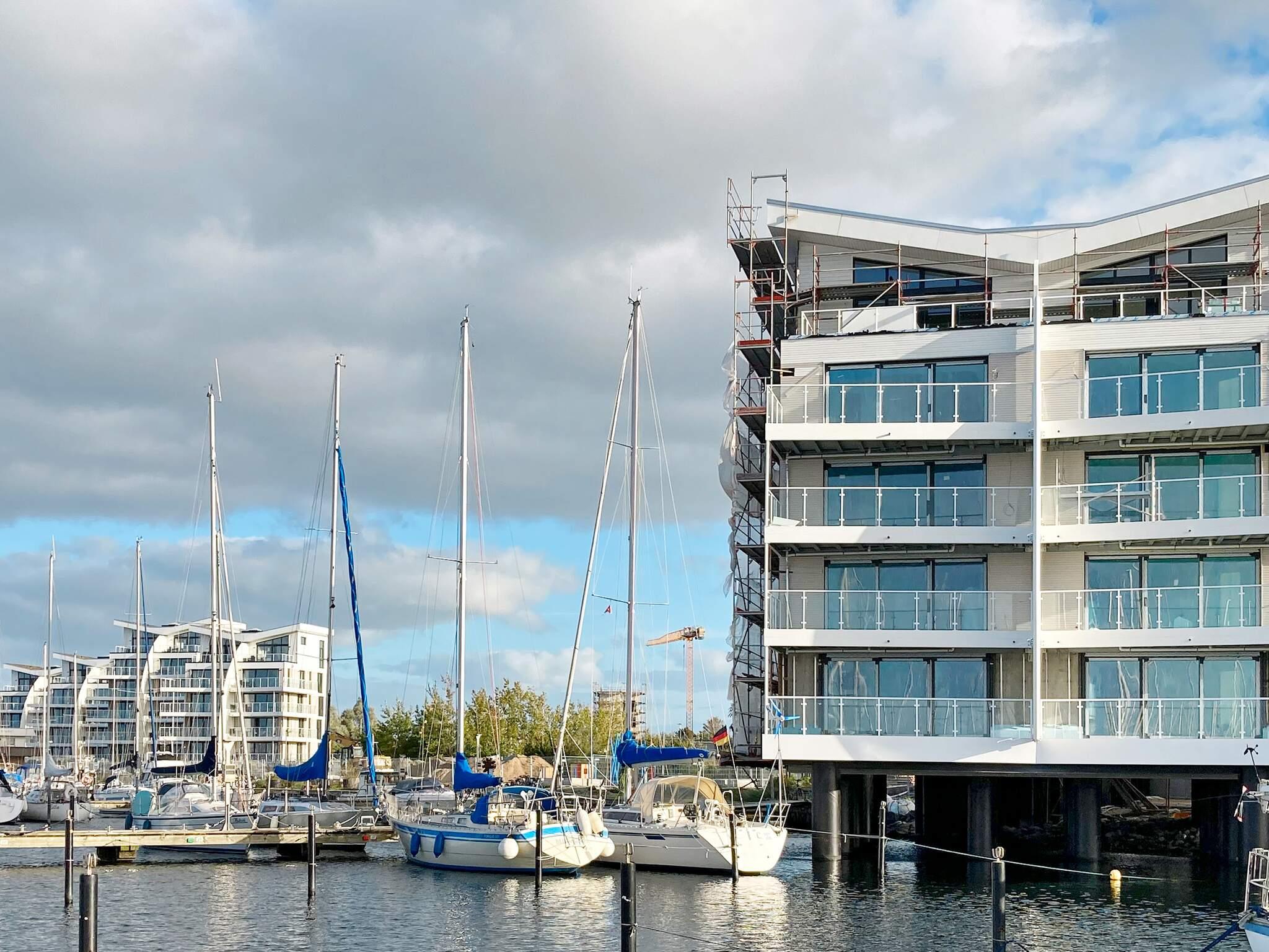 Moderne und komfortable Ferienwohnung direkt auf dem Wasser mit einem traumhaften Panorama Ausblick. Die Wasservillen bieten einen unvergesslichen Blick auf die Ostsee und den Yachthafen von früh bis abends.