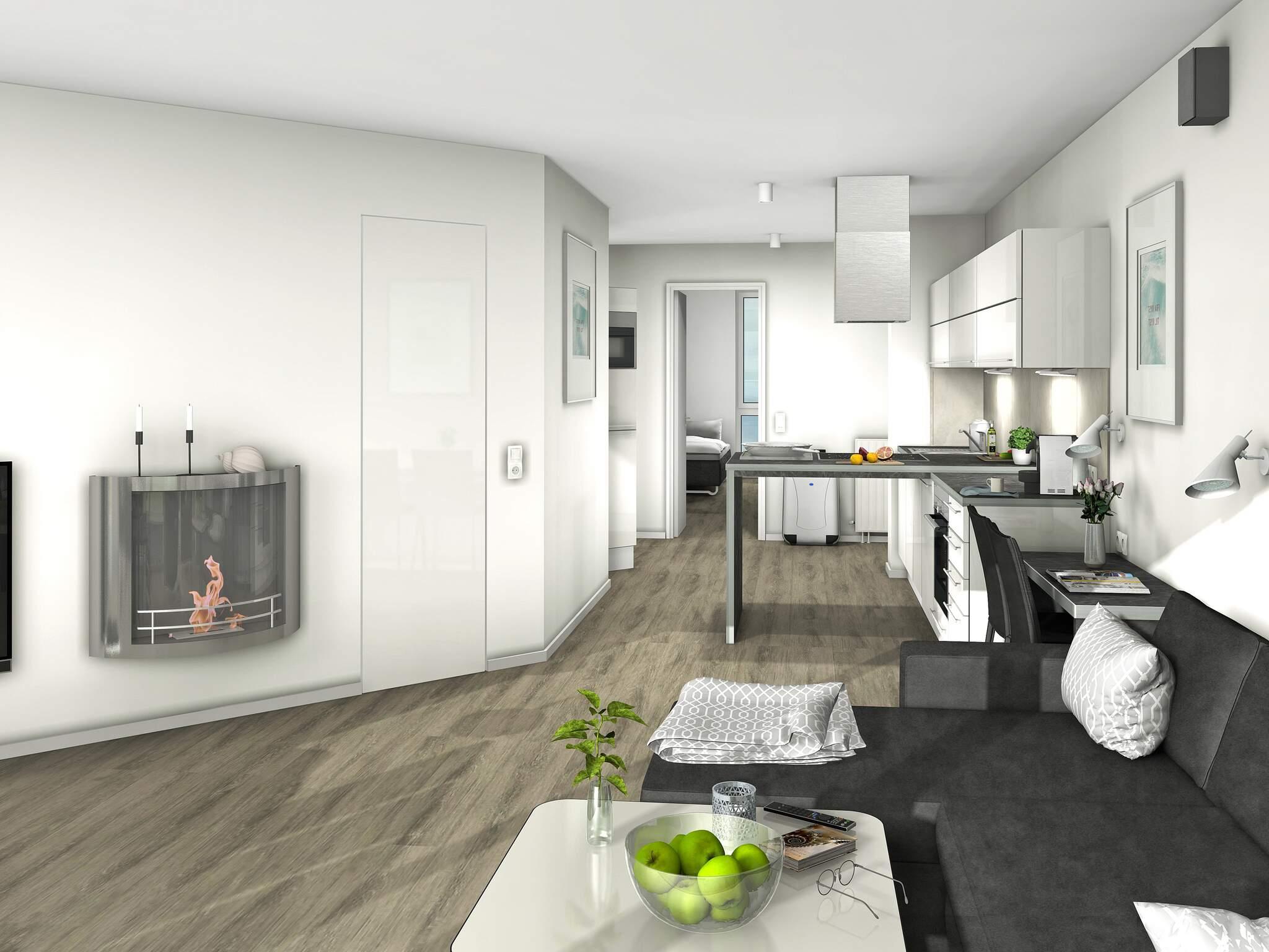 Da es sich um eine Serie mit mehreren identischen Wohnungen handelt, kann die Einrichtung variieren. Modellbilder.
