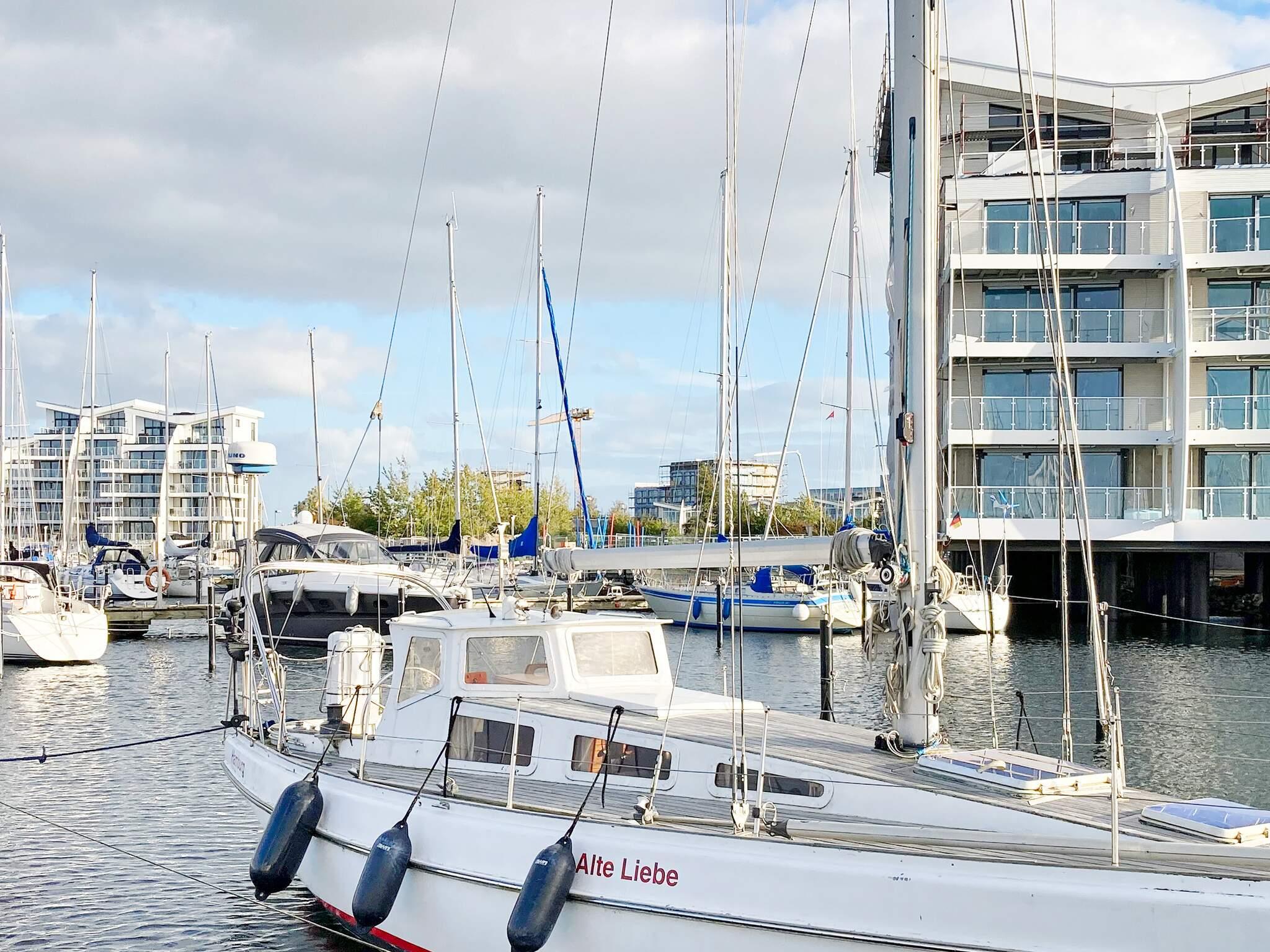 Penthouse-Ferienwohnung an der Hafenfront von Marina Wendtorf direkt auf dem Wasser mit einem traumhaften Panorama Ausblick von der Dachterrasse. Die Wasservillen bieten einen unvergesslichen Blick auf die Ostsee und den kleinen Ostseehafen von früh bis abends.