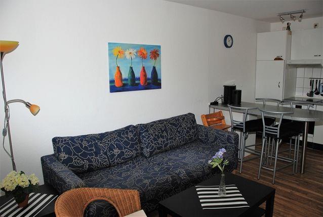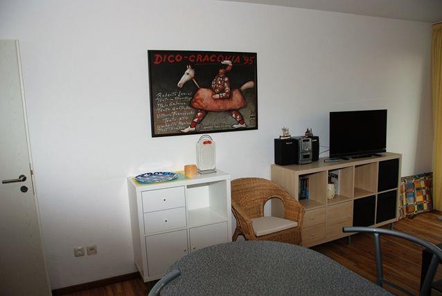 Die Wohnung verfügt über einen offenen Wohn- und Essbereich mit integrierter Küche. Ausgestattet mit einem bequemen Sofa, einem TV-Gerät und einem Esstisch verbringen Sie hier gemütliche Stunden nach einem ereignisreichen Urlaub. Die Küche verfügt über alle notwendigen technischen Geräte, wie z.B. Backofen, Herd, Geschirrspülmaschine und Kühlschrank mit Gefrierschrank und bietet somit gute Möglichkeiten für die Zubereitung Ihrer Mahlzeiten.