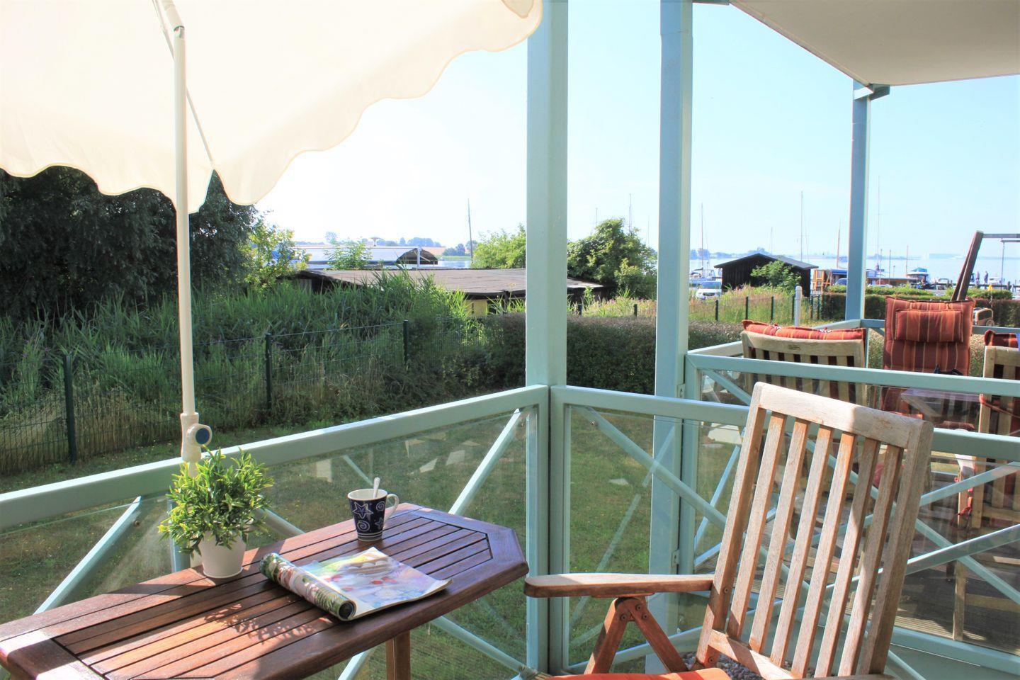 Komfortable Ferienwohnung direkt am Hafen von Kirchdorf mit Balkon und seitlichem Meerblick auf der Insel Poel.
