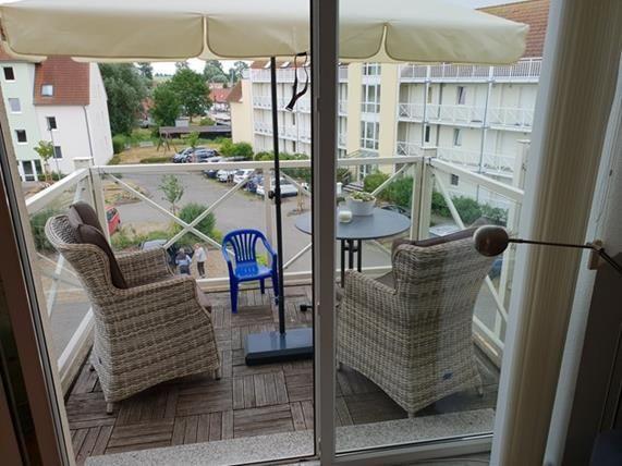Die Ferienwohnung Albeck in Kirchdorf bietet seitlichen Wasserblick und einen Balkon in zentraler Lage am Yachthafen.