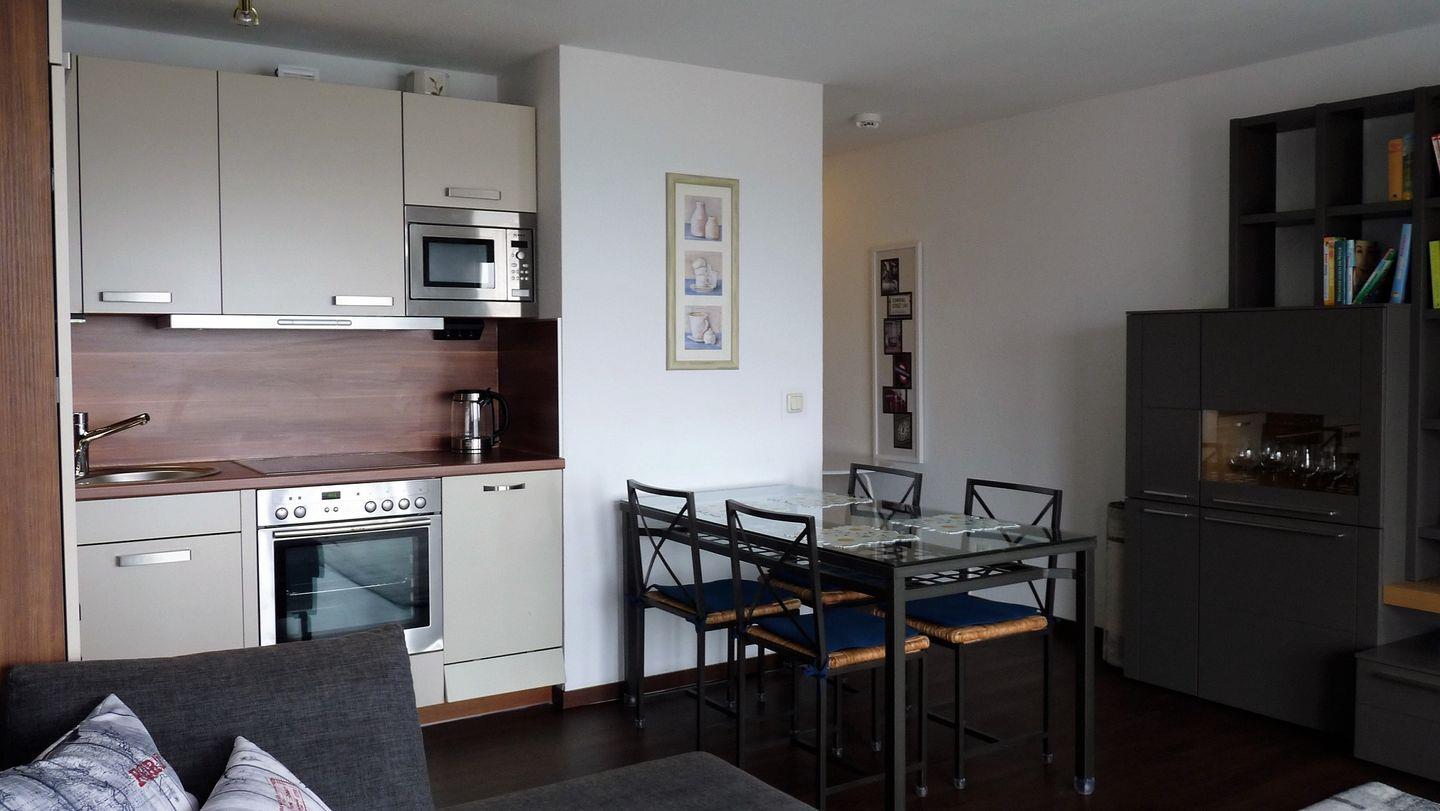 In der integrierten hochwertigen Küche finden Sie alles, was Sie zum Selbstversorgen benötigen: Herd mit Backofen, Kühlschrank, Mikrowelle, Kaffeemaschine, Geschirrspüler und vieles mehr. Am angrenzenden Esstisch starten Sie bei einem ausgiebigen Frühstück in den Urlaubstag.