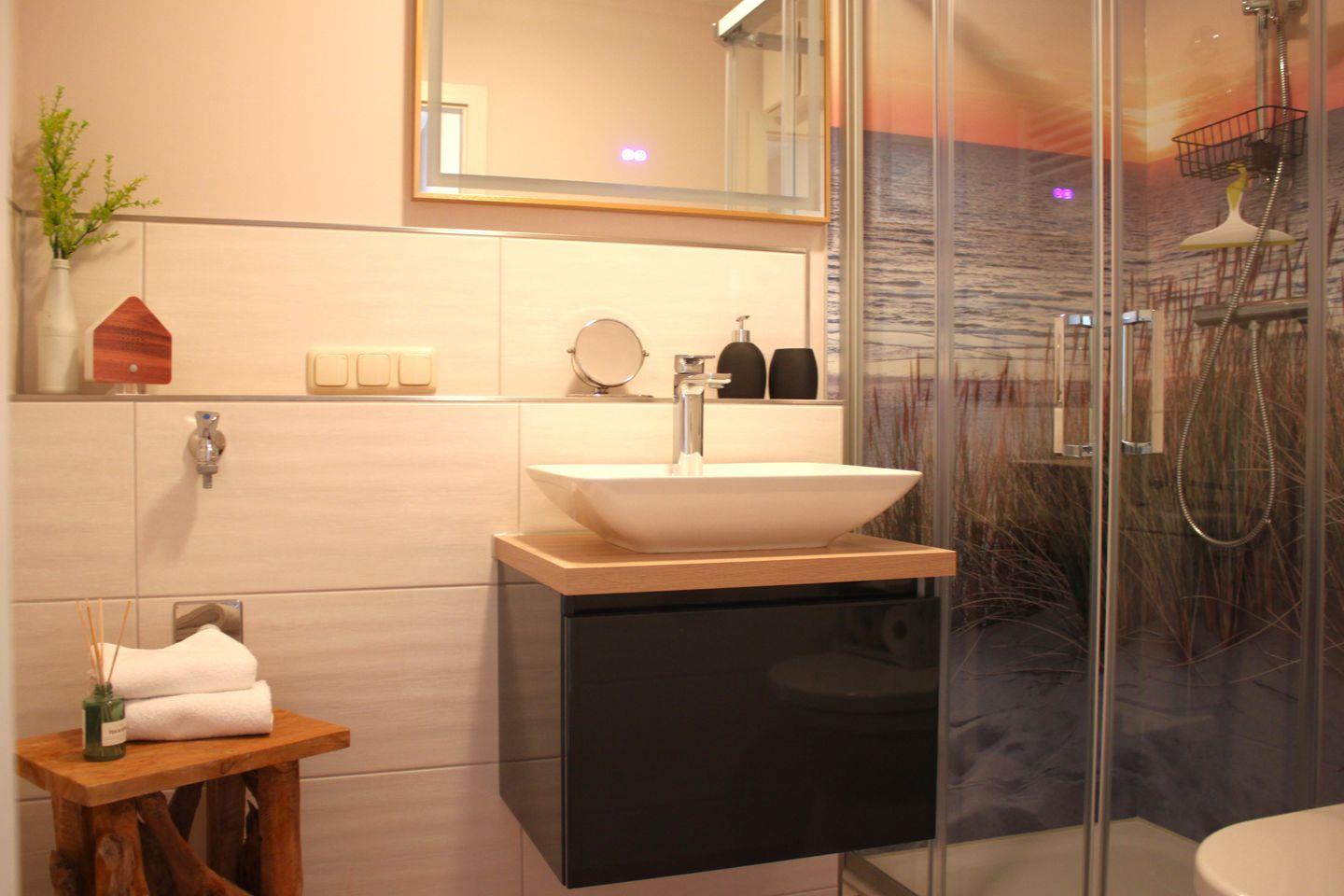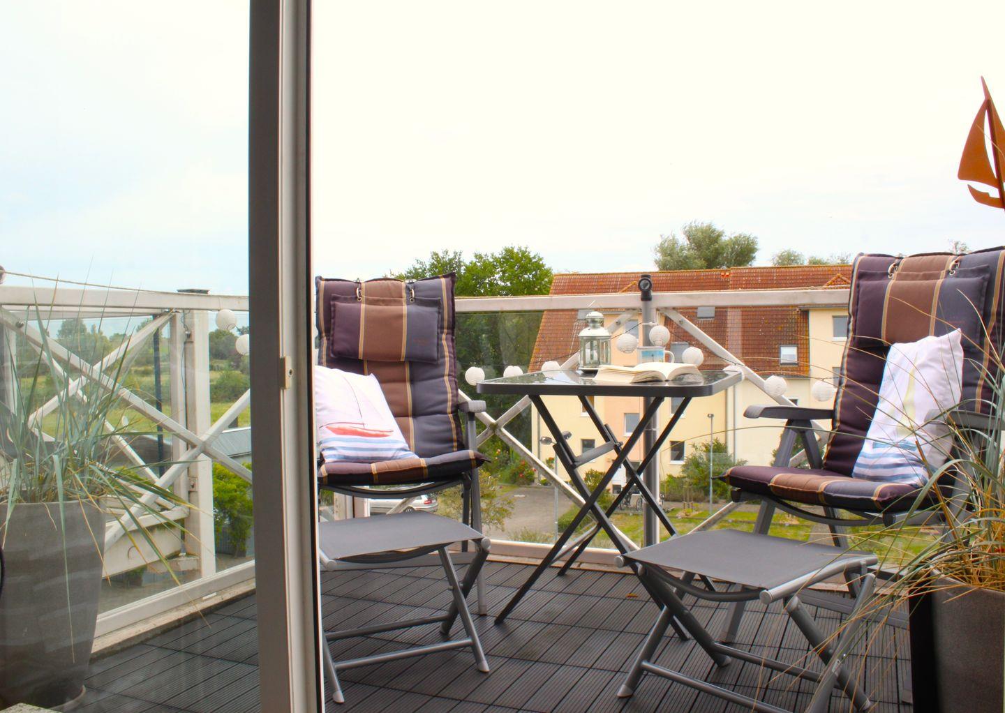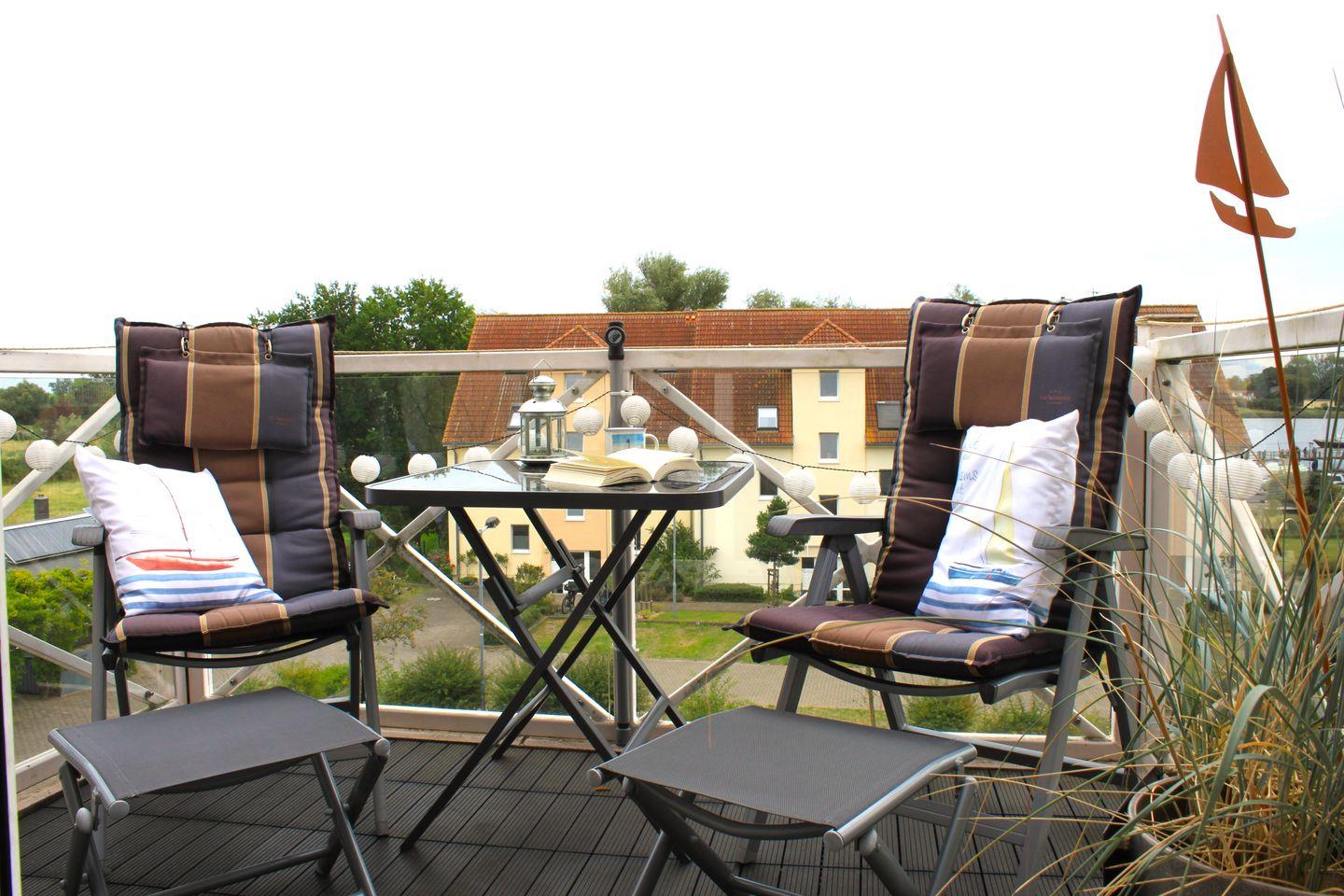 Moderne Ferienwohnung "Lütt Kajüt" am Hafen Kirchdorf auf der Insel Poel mit Balkon und eingeschränktem Meerblick.