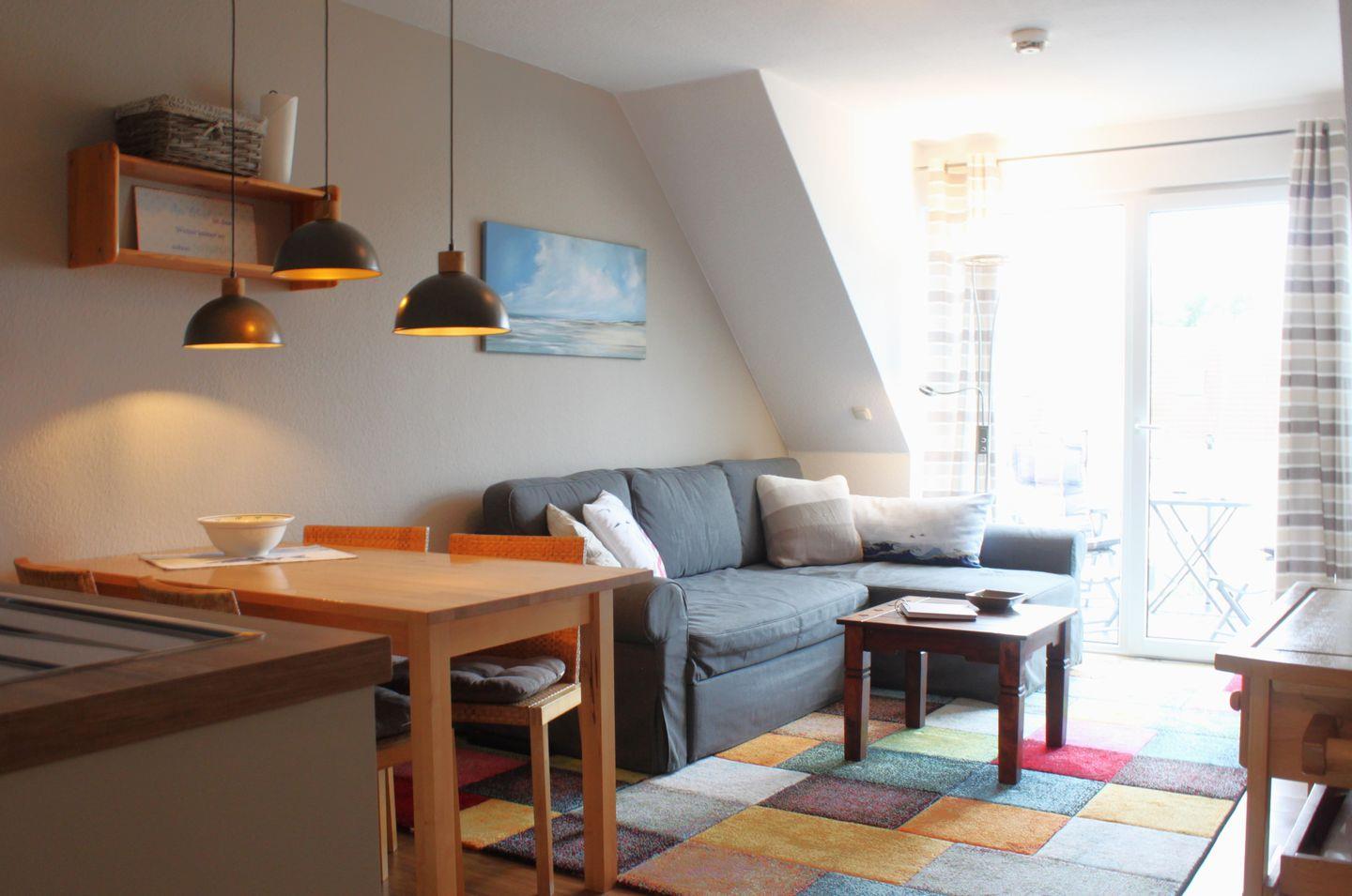 Die Ferienwohnung Lütt Kajüt bietet auf 40 m² modernen Komfort für zwei Personen. Sie verfügt über einen offenen Wohn-Essbereich mit vollständig ausgestatteter Küche, ein separates Schlafzimmer, einen überdachten Balkon mit eingeschränktem Meerblick sowie WLAN. Ein eigener Parkplatz und die Nähe zu Einkaufsmöglichkeiten und Restaurants runden das Angebot ab.