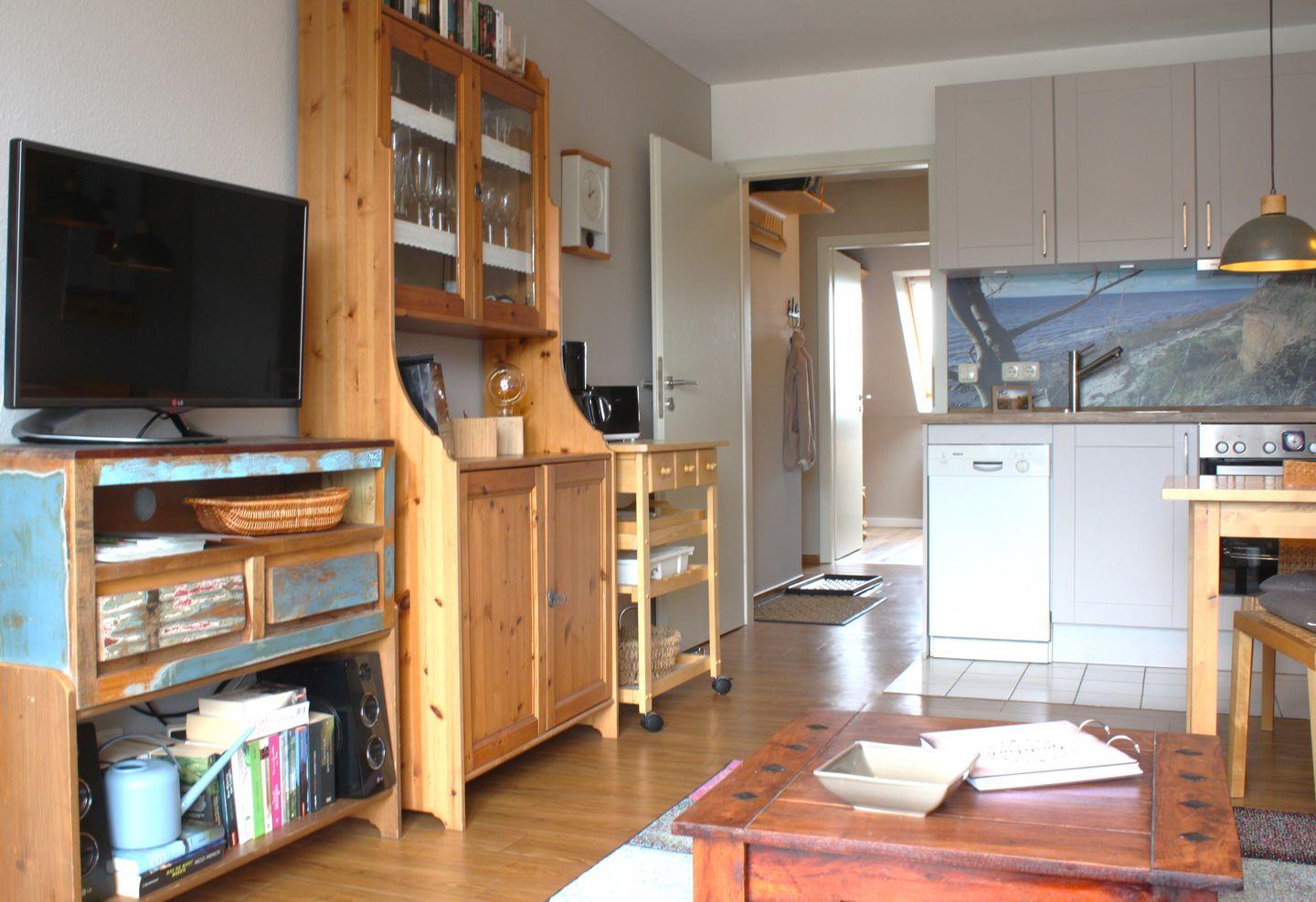 Der kombinierte Wohn- und Essbereich lädt zum Verweilen ein und verfügt über einen Esstisch, ideal für Mahlzeiten zu zweit. Entspannen Sie sich in der gemütlichen Sofaecke, während Sie Ihre Lieblingssendungen auf dem Fernseher genießen oder Ihre Lieblingsmusik über das Radio, den CD- oder DVD-Player abspielen.
