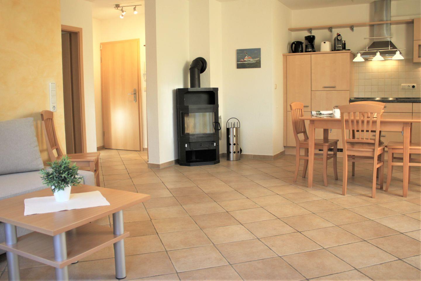 Gemütliches Erdgeschoss-Appartement in Kirchdorf auf der Insel Poel mit Terrasse, Kamin und WLAN.