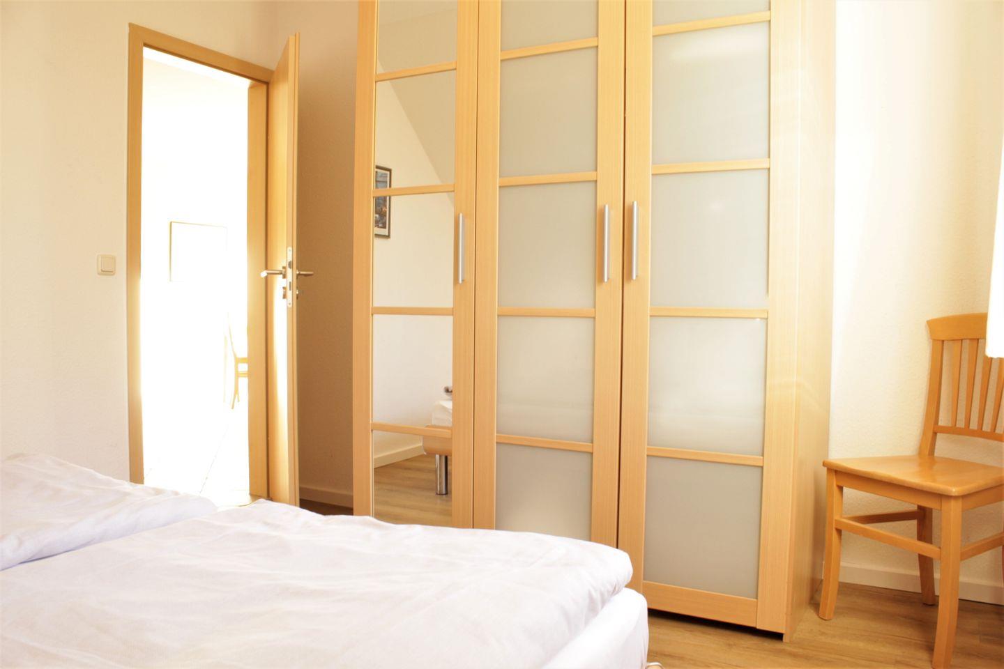 Das Schlafzimmer bietet Ihnen ein Doppelbett und ein Kleiderschrank und für zwei weitere Schlafplätze steht die ausziehbare Couch im Wohnzimmer zur Verfügung.