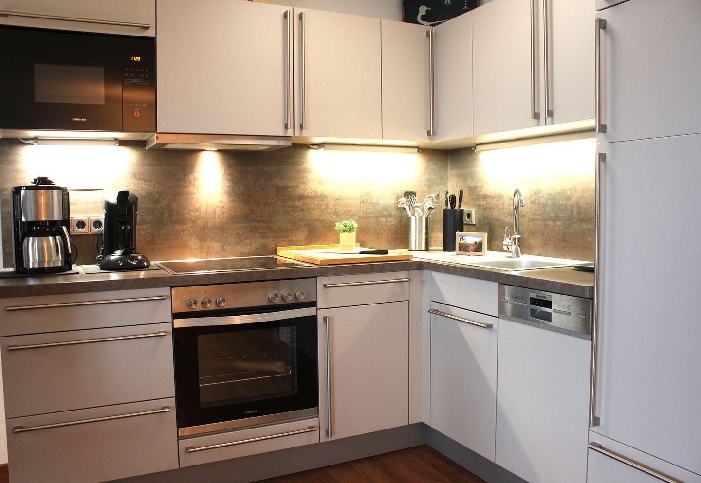Die in den Wohnraum integrierte, hochwertige Küche mit Essbereich ist mit allen technischen Geräten, wie z.B. Herd mit Backofen, Kühlschrank mit Gefrierfach,Geschirrspülmaschine, Kaffeemaschine und vielem mehr ausgestattet und bietet gute Möglichkeiten für die Zubereitung Ihrer Mahlzeiten.