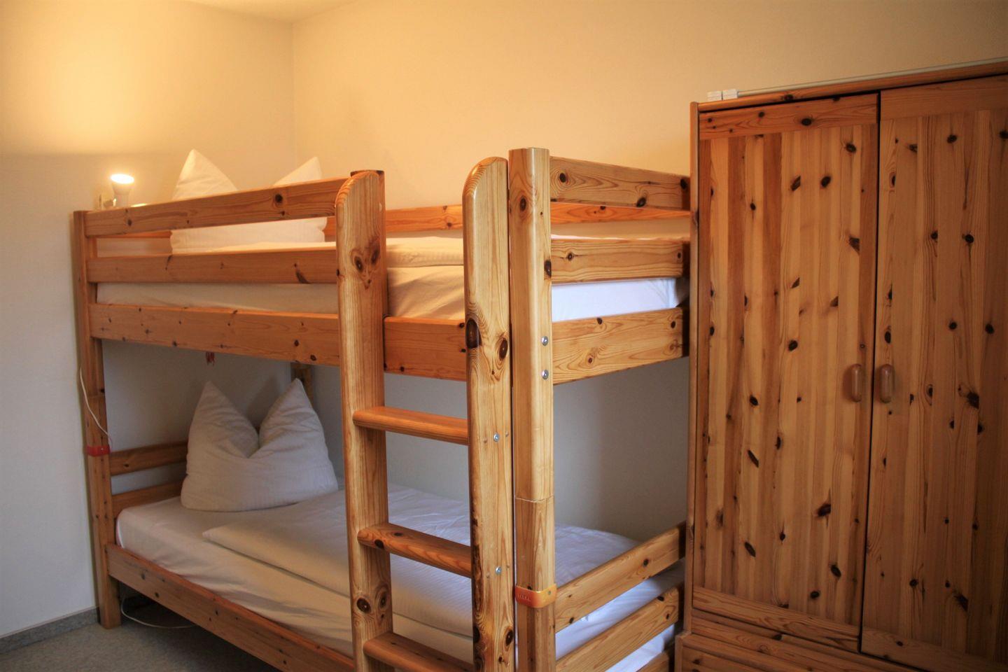 Für einen erholsamen Schlaf stehen Ihnen zwei separate Schlafzimmer zur Verfügung. Das Hauptschlafzimmer ist mit einem Doppelbett und einem Kleiderschrank ausgestattet. Das zweite Schlafzimmer verfügt über ein Etagenbett für 2 Personen, einen Kleiderschrank und einen Schreibtisch. Die Schlafcouch im Wohnzimmer bietet zwei weitere Schlafplätze.