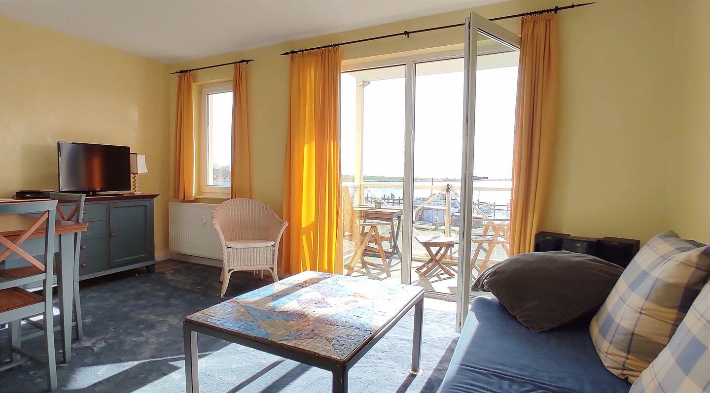Ferienwohnung "Auszeit" in Kirchdorf mit Balkon und herrlichem Blick auf den Hafen und das Meer.