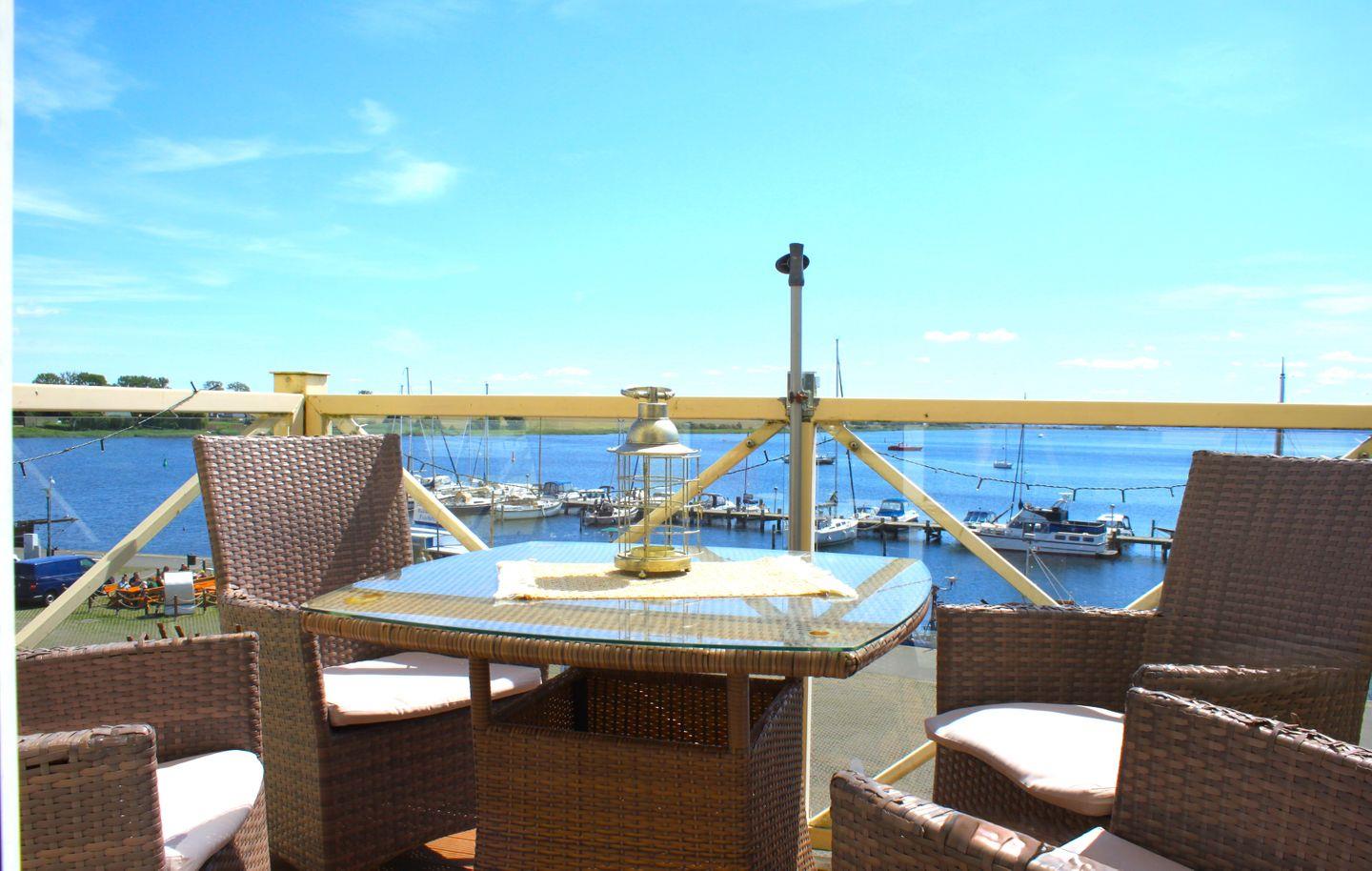 Die Maisonette-Ferienwohnung Seepanorama 1 befindet sich im 2. Stock der Residenz am Yachthafen. Das geräumige Wohnzimmer erwartet Sie mit seiner breiten Fensterfront und einem möblierten Balkon und bietet Ihnen einen atemberaubenden Blick über die Kirchsee und den Hafen.