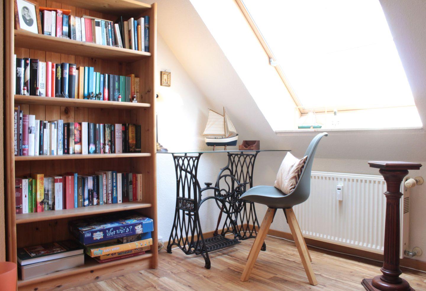 Über eine Holztreppe gelangen Sie zur offenen Galerie mit einer Doppelbettschlafcouch für 2 Personen. Unter dem Dachflächenfenster finden Sie einen kleinen Schreibtisch und eine Mini-Bibliothek. Neben der Galerie befindet sich das Schlafzimmer mit Doppelbett und Kleiderschrank für Ihre Garderobe. Es verfügt ebenfalls über ein Dachflächenfenster, von wo aus Sie vor dem Schlafengehen nochmals Ihren Blick auf die Kirchsee genießen können.
