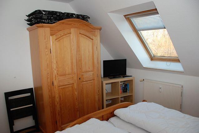 Die Wohnung verfügt über zwei separate Schlafzimmer. Ein Schlafzimmer ist mit einem Doppelbett, einem Kleiderschrank und einem TV-Gerät, das zweite mit zwei Einzelbetten, einem Kleiderschrank und einem Schreibtisch möbliert. Hier findet auch das Kinderreisebett, wenn benötigt, seinen Platz. Für zwei weitere Personen lassen sich die beiden Sofas im Wohnzimmer problemlos in zwei getrennte, großzügige Schlafmöglichkeiten verwandeln. Wir empfehlen die Nutzung der Doppelschlafcouchen für Kinder.