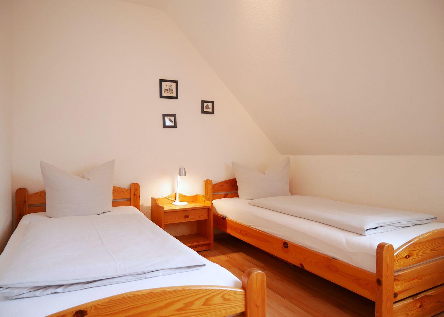 Die Wohnung verfügt über zwei separate Schlafzimmer. Ein Schlafzimmer ist mit einem Doppelbett, einem Kleiderschrank und einem TV-Gerät, das zweite mit zwei Einzelbetten, einem Kleiderschrank und einem Schreibtisch möbliert. Hier findet auch das Kinderreisebett, wenn benötigt, seinen Platz. Für zwei weitere Personen lassen sich die beiden Sofas im Wohnzimmer problemlos in zwei getrennte, großzügige Schlafmöglichkeiten verwandeln. Wir empfehlen die Nutzung der Doppelschlafcouchen für Kinder!
