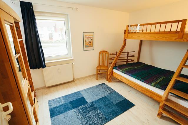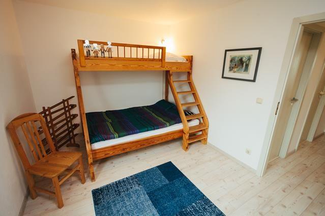 Ein Schlafzimmer verfügt über ein klassisches Doppelbett, das zweite Schlafzimmer über ein Etagenbett für drei Personen, die untere Liegefläche entspricht einem Doppelbett (1,40 m breit).Die Wohnung ist damit besonders für Familien mit bis zu drei Kindern geeignet.