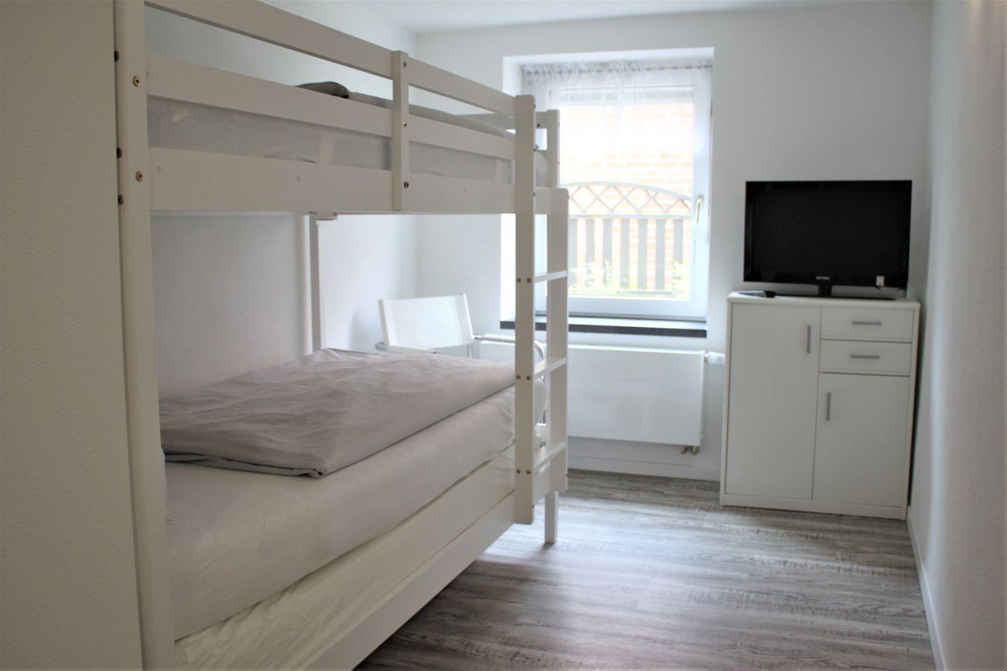 Die zwei separaten Schlafzimmer sind entweder mit einem Doppelbett und Kleiderschrank oder einem Etagenbett und zweitem TV-Gerät ausgestattet und ermöglichen erholsamen Nächte.