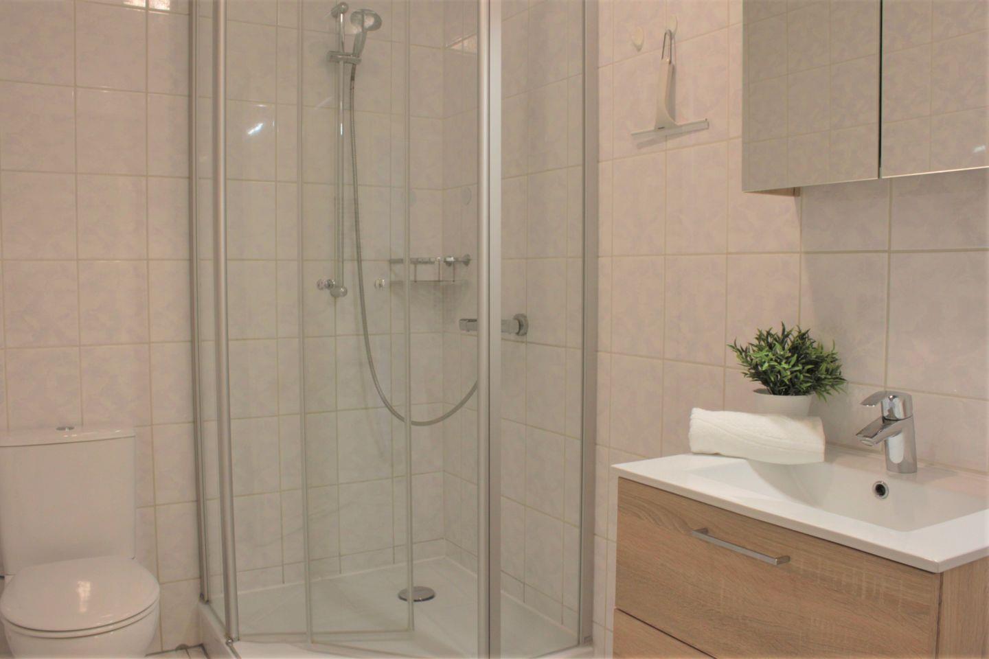 Im innenliegenden Badezimmer verfügen Sie über eine Dusche, Waschtisch, WC und Föhn.