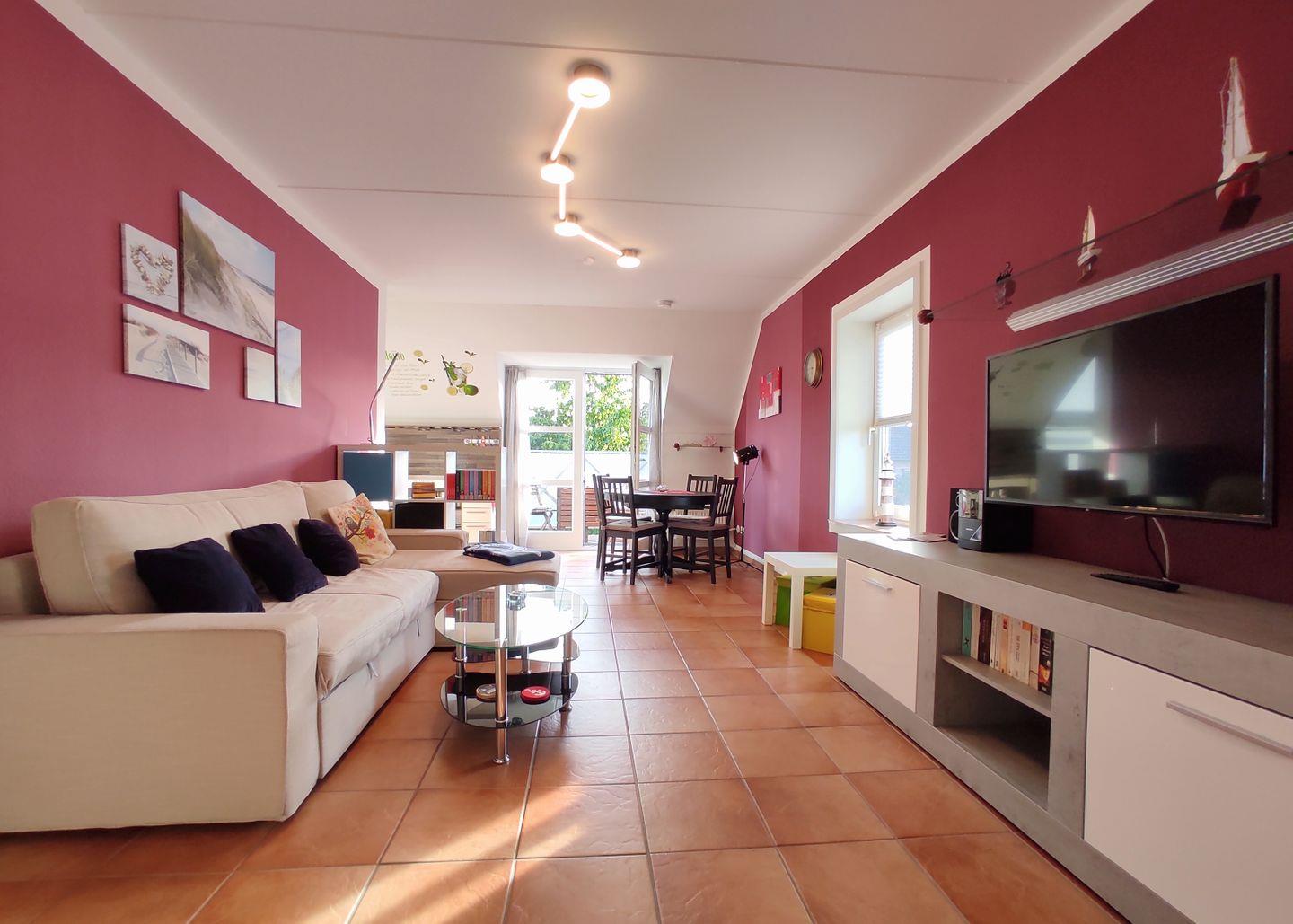 Die Ferienwohnung erstreckt sich über drei Zimmer und bietet ausreichend Platz für vier Gäste. Sobald Sie eintreten, werden Sie von einer warmen Atmosphäre empfangen, die zum Entspannen einlädt.
