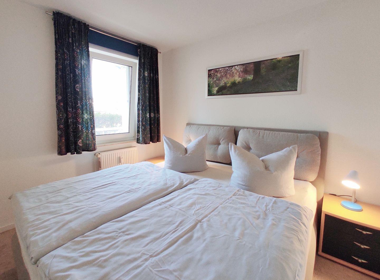 Die Ferienwohnung verfügt über ein komfortables, separates Schlafzimmer mit einem geräumigen Doppelbett (durchgehende Matratze), das für erholsame Nächte sorgt. Falls Sie mit einer zusätzlichen Person reisen, steht Ihnen ein ausziehbares Schlafsofa im Wohnzimmer zur Verfügung. Hier finden Sie auch Unterhaltungsmöglichkeiten wie einen Fernseher, einen Radio, einen CD- und DVD-Player sowie eine Auswahl an Büchern und eine Spielesammlung, um gemütliche Abende zu verbringen.
