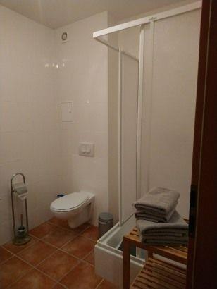 Das Badezimmer bietet eine Dusche, einen Waschtisch, einen Föhn und ein WC.