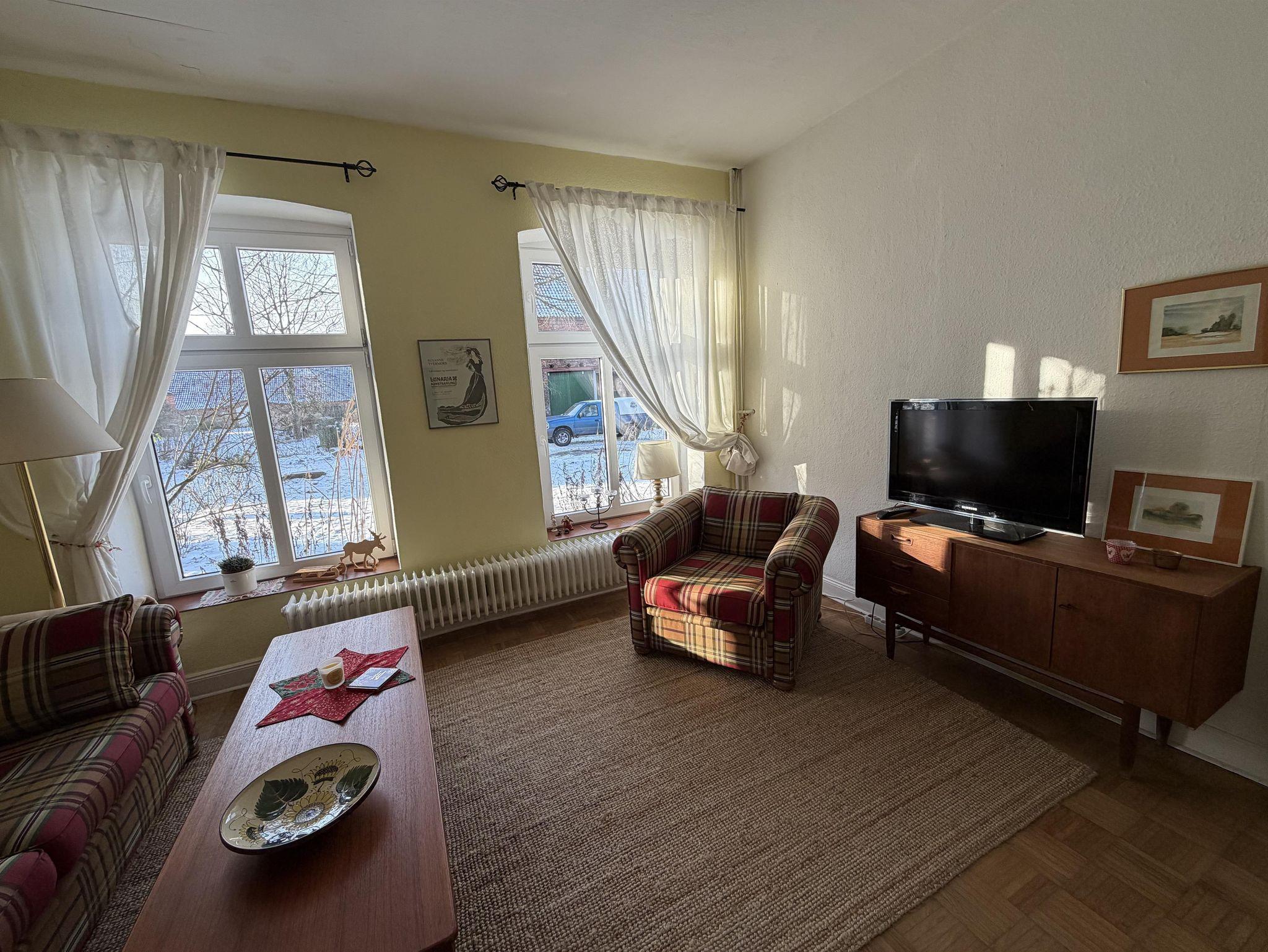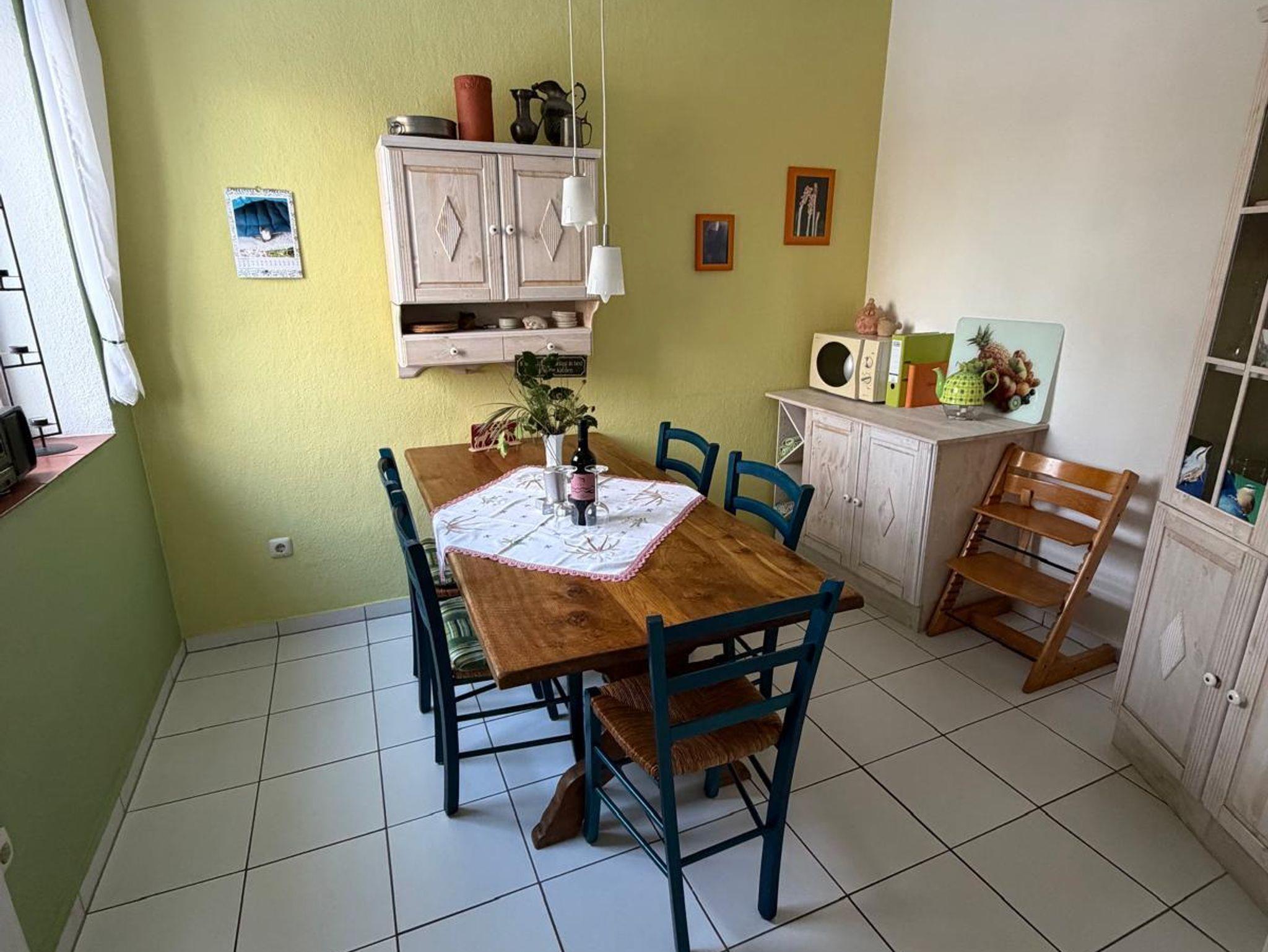 Die im Landhausstil eingerichtete Haushälfte verfügt über ein Wohnzimmer, Küche mit angrenzendem Esszimmer, Badezimmer und ein Schlafzimmer (Doppelbett und Einzelbett) im Erdgeschoss, im Obergeschoss finden Sie das zweite Schlafzimmer (Doppelbett und Einzelbett), ein kleines Kinderschlafzimmer sowie in einem Durchgangszimmer ein weiteres Bett.