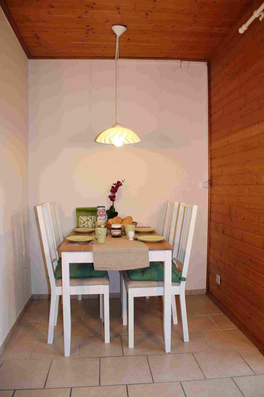 Das sogenannte „Zollhaus“ aus den 60er Jahren ist liebevoll renoviert und auf den Stand der Zeit gebracht worden. Der Innenraum erzeugt aus uriger Gemütlichkeit und modernen Elementen eine wohlige Atmosphäre. Geblieben isind der große Garten und die überdachte Terrasse. Die Ferienunterkunft erstreckt sich über eine Wohnfläche von 70 m² und ist in ein Schlafzimmer, ein großes Wohnzimmer, eine separate Küche mit Essplatz, sowie ein Tageslicht-Vollbad unterteilt. Herzstück der Wohnung ist das stattliche Wohnzimmer, das einen hellen Laminatboden und einen herrlichen Kaminofen bietet, der im Herbst, an kühlen Frühlingstagen und natürlich im Winter Behaglichkeit verbreitet. Unabhängig davon hält natürlich auch eine Zentralheizung das Haus warm. Auf der Eckcouch entspannen Sie nach einem Tagesausflug während der große Flachbild-Fernseher, ein Blu-Ray-Player mit einer kleinen Auswahl an Filmen sowie eine Hifi-Anlage für Unterhaltung sorgen. Im Schlafzimmer finden zwei Personen Schlaf in einem Doppelbett einer Maße von 1,80 x 2,00 m und ausreichend Platz für Ihre Kleidung in einem Schrank und einer Kommode. Das Kiefern-Design steht im Einklang mit dem Ambiente des Ferienhauses. Auch hier haben Sie einen modernen hellen Laminatboden. In der Küche steht ein weiterer Kaminofen. Nach einem Spaziergang im noch kühlen Frühling oder einem goldenen Herbsttag hereinkommen, eine heiße Suppe genießen und dazu der Feuerschein vom Ofen – das ist ein perfekter Empfang in Ihrem Heim auf Zeit. Die geflieste Küche ermöglicht eine umfangreiche Selbstversorgung mit einem Vier-Zonen Glaskeramikherd mit Backofen, Kühlschrank, Spülmaschine und den üblichen Geräten wie einer Kaffeemaschine, Wasserkocher und Toaster. Im geröumigen Badezimmer haben Sie die Wahl zwischen einer modernen Duschkabine und einer Badewanne. Ihren Haartrockner können Sie gern zu Hause lassen, es ist schon einer da. Die Nutzung von WLAN ist inklusive.