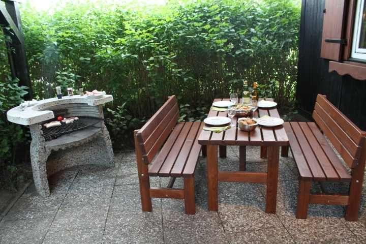 Im Sommer lädt die großzügige Terrasse (ca 4 x 5 m) beim Gesang der Vögel zum Frühstück oder zum schönen Tagesausklang am Holzkohlegrill ein. Dazu haben Sie die Aussicht auf viel grün im eigenen Garten, die Hecken und hohe Bäume. Auf dem Grundstück ist ausreichend Platz für Ihren Pkw vorhanden, direkt vor dem Gartentor.