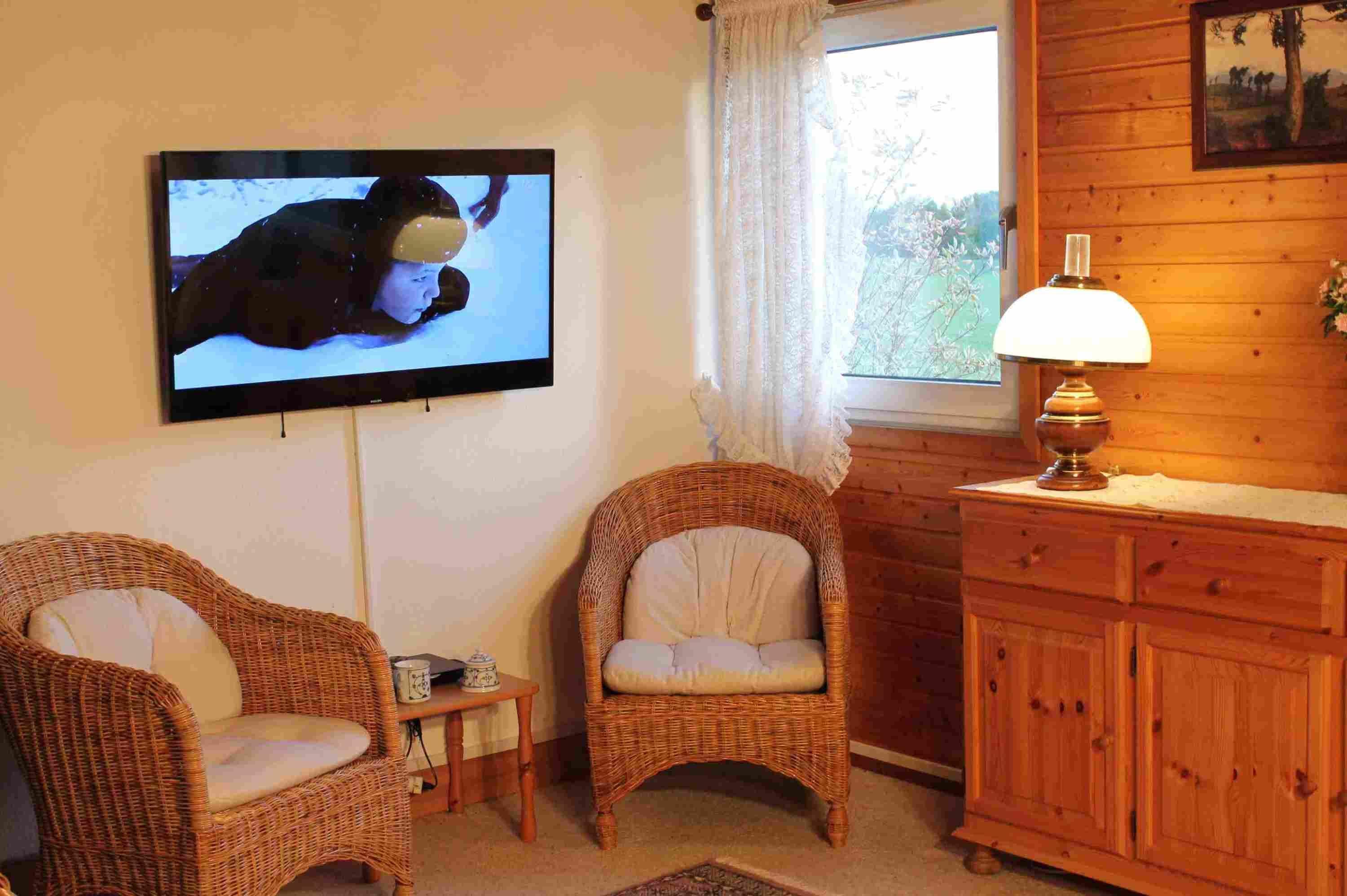 Das sogenannte „Zollhaus“ aus den 60er Jahren ist liebevoll renoviert und auf den Stand der Zeit gebracht worden. Der Innenraum bietet mit viel Holz Gemütlichkeit. Geblieben sind der große Garten und die schön geschützte Terrasse. Die Ferienunterkunft erstreckt sich über eine Wohnfläche von 75 m² und ist in ein Schlafzimmer, Wohnzimmer, eine Küche mit Essplatz, sowie ein Tageslicht-Duschbad unterteilt. Herzstück der Wohnung ist das stattliche Wohnzimmer, das einen herrlichen Kaminofen bietet, der im Herbst, an kühlen Frühlingstagen und natürlich im Winter Behaglichkeit verbreitet. Unabhängig davon hält natürlich auch eine Zentralheizung das Wohnzimmer warm. In der Küche und im Schlafzimmer gibt es E-Heizungen, in der Küche auch einen weiteren Ofen. Auf der Couch entspannen Sie nach einem Tagesausflug, während der große Flachbild-Fernseher, ein Blu-Ray-Player mit einer kleinen Auswahl an Filmen sowie eine Hifi-Anlage für Unterhaltung sorgen. Im Schlafzimmer finden zwei Personen Schlaf in einem Doppelbett (1,80 x 2,00 m) und ausreichend Platz im großen Schrank. Die Küche ermöglicht eine umfangreiche Selbstversorgung anhand eines Vier-Zonen Glaskeramikherds mit Backofen, Kühlschrank und den üblichen Geräten wie Kaffee-Maschine, Wasserkocher und Toaster. Im ausgedehnten Badezimmer haben Sie viel Raum durch die offene Dusche. WLAN ist inklusive.
