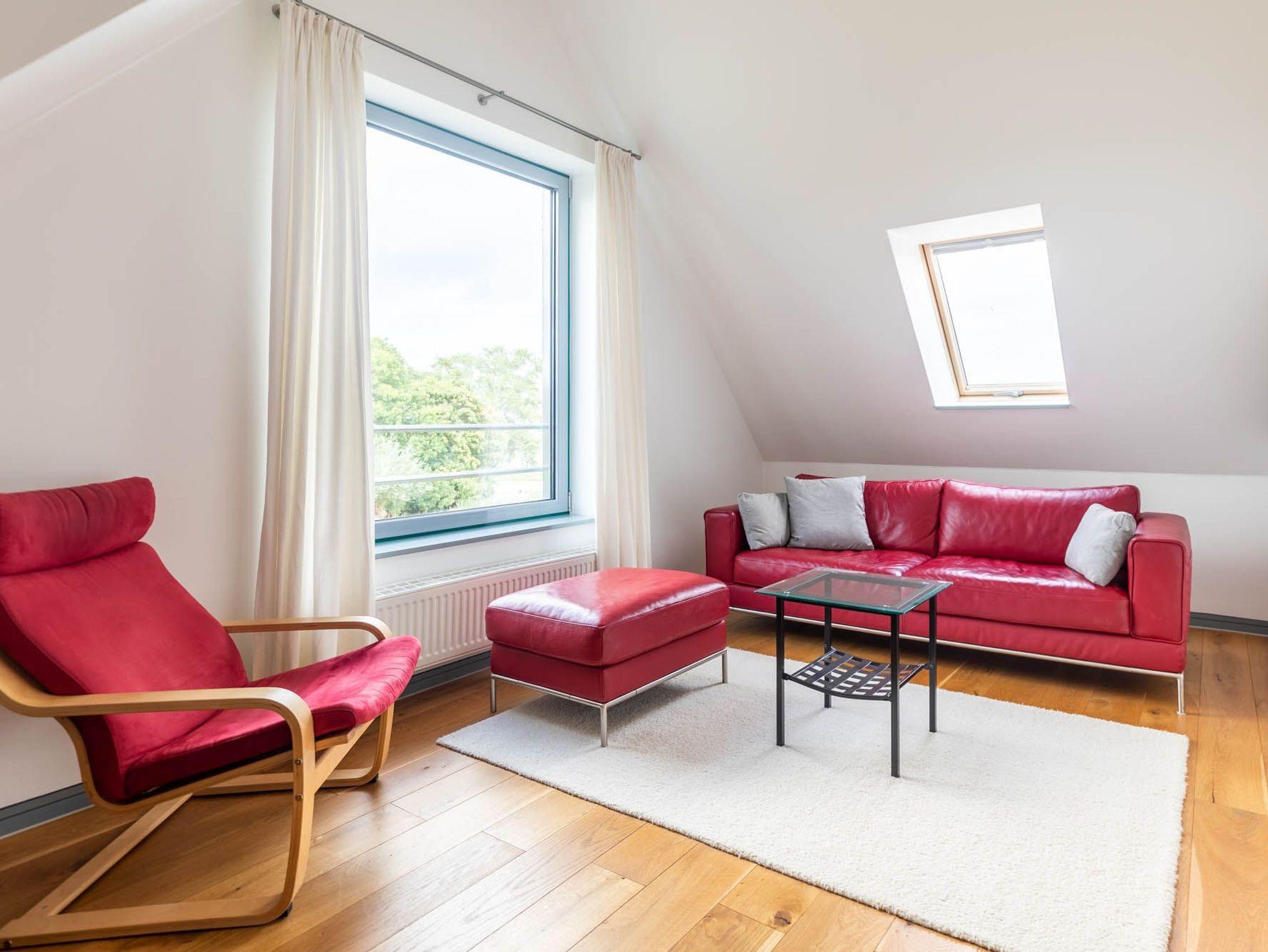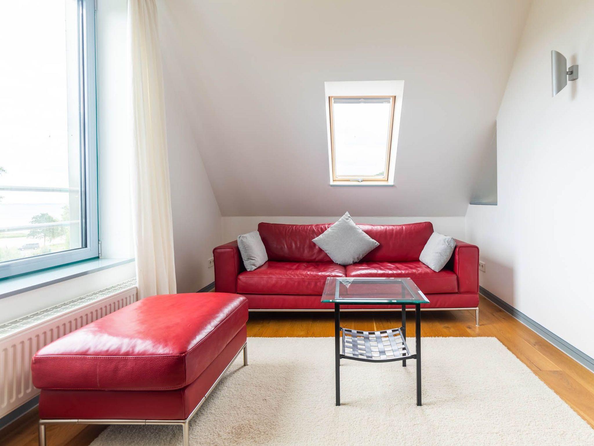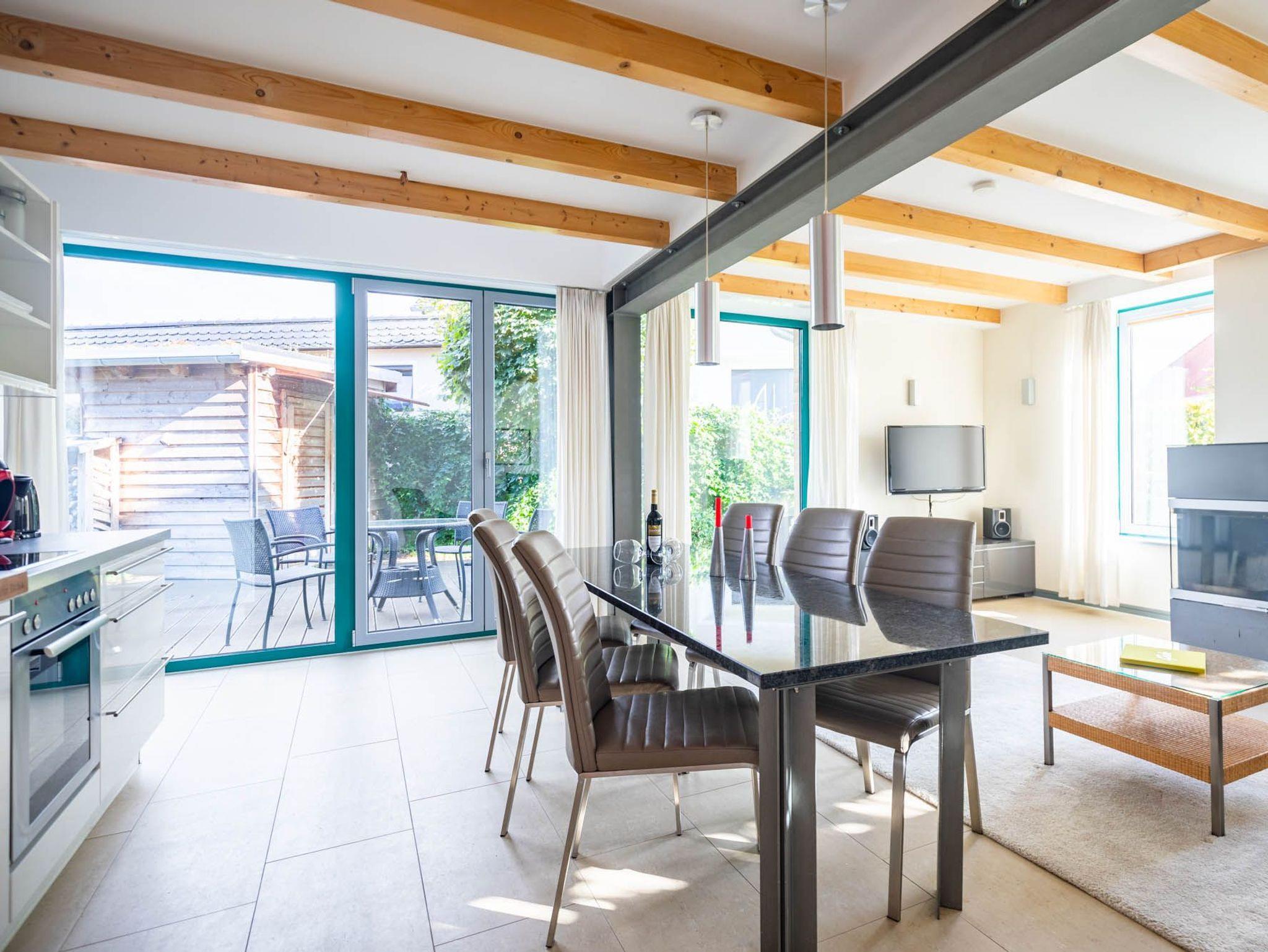 Im Erdgeschoss werden Sie von einem stilvoll eingerichteten Wohn- und Essbereich mit Ostseeblick und Kamin empfangen. Das Kaminholz liegt für Sie bereit und kann gerne genutzt werden. Flatscreen-TV und DVD-Player sorgen auf Wunsch für Unterhaltung.