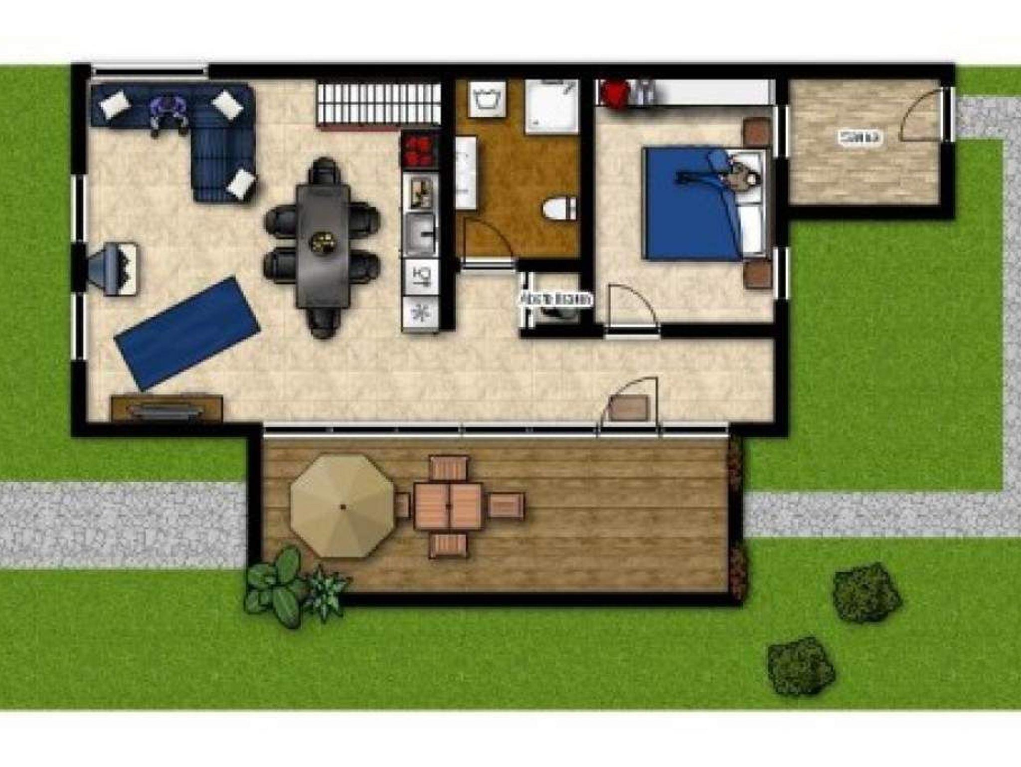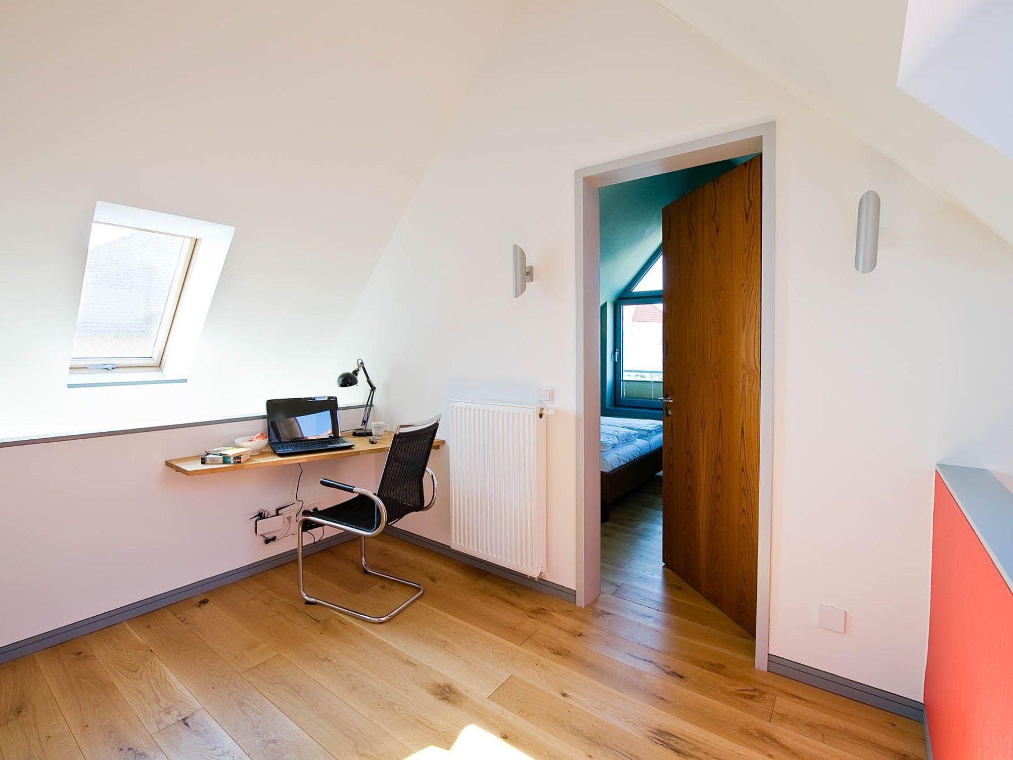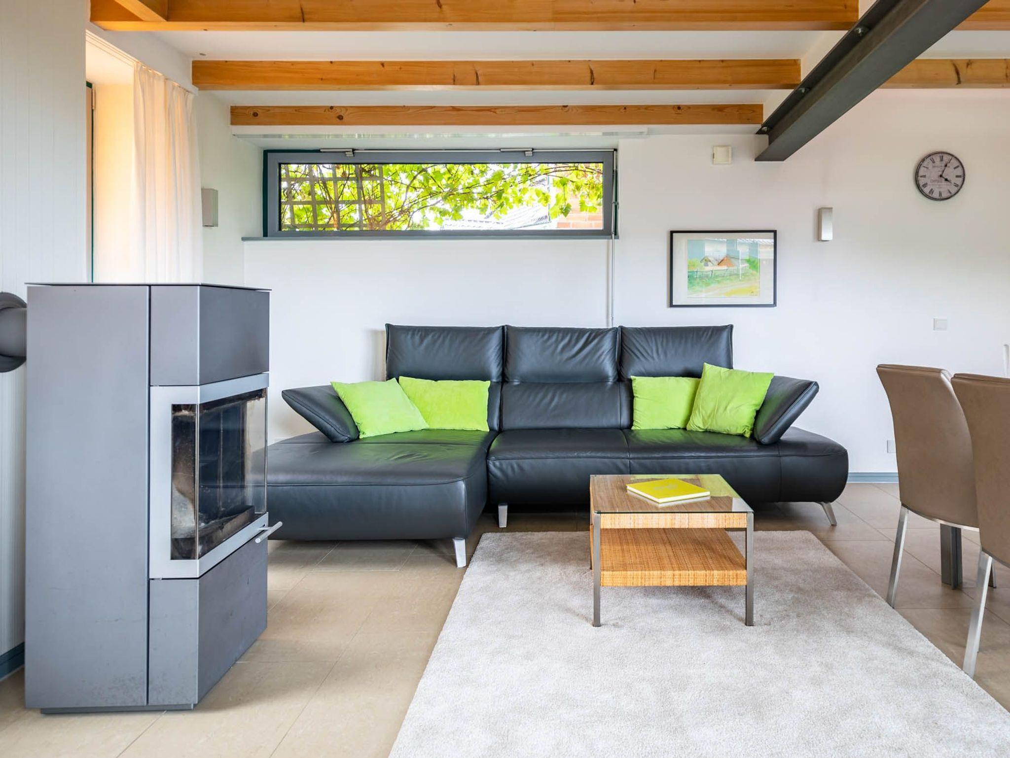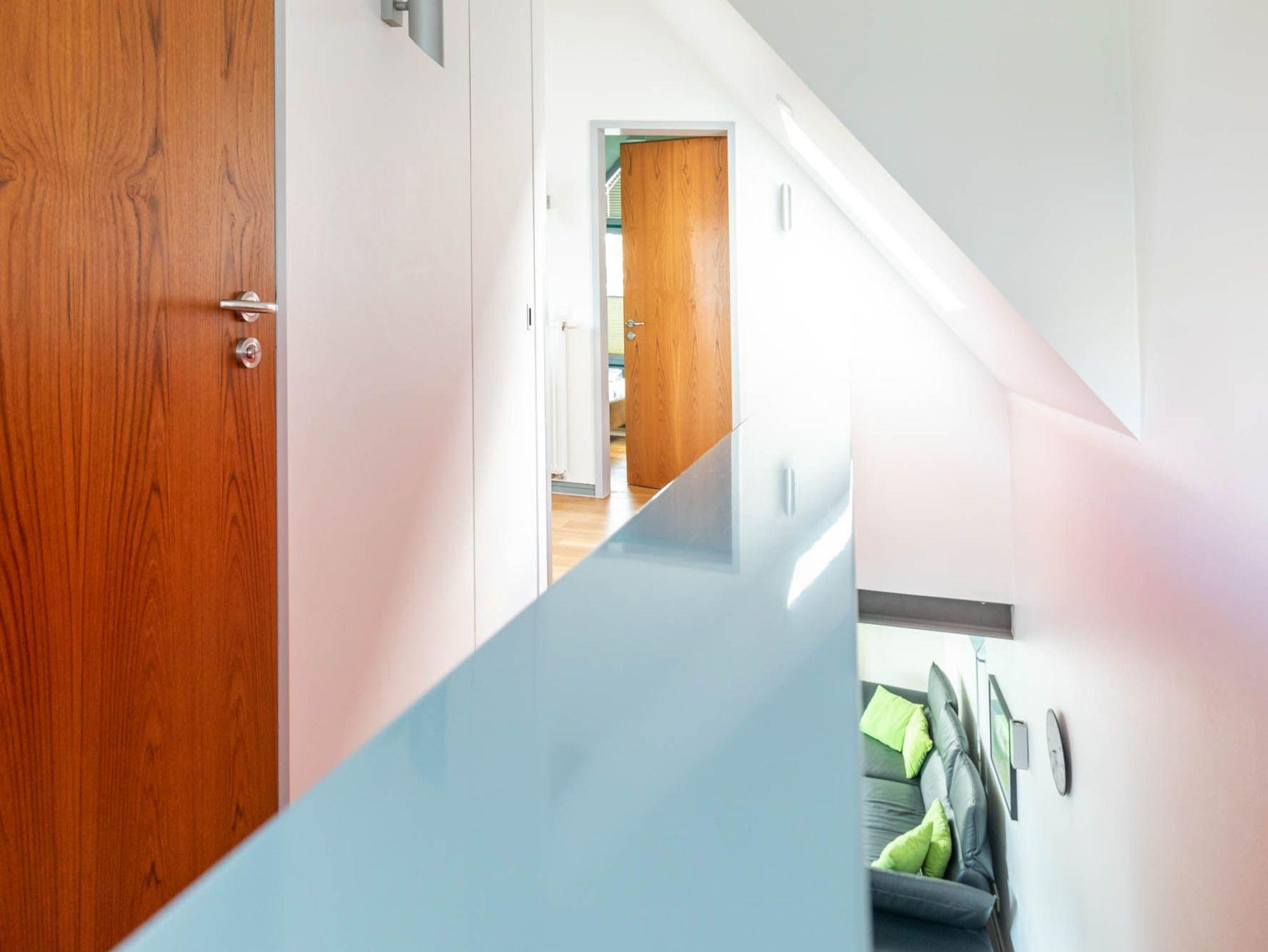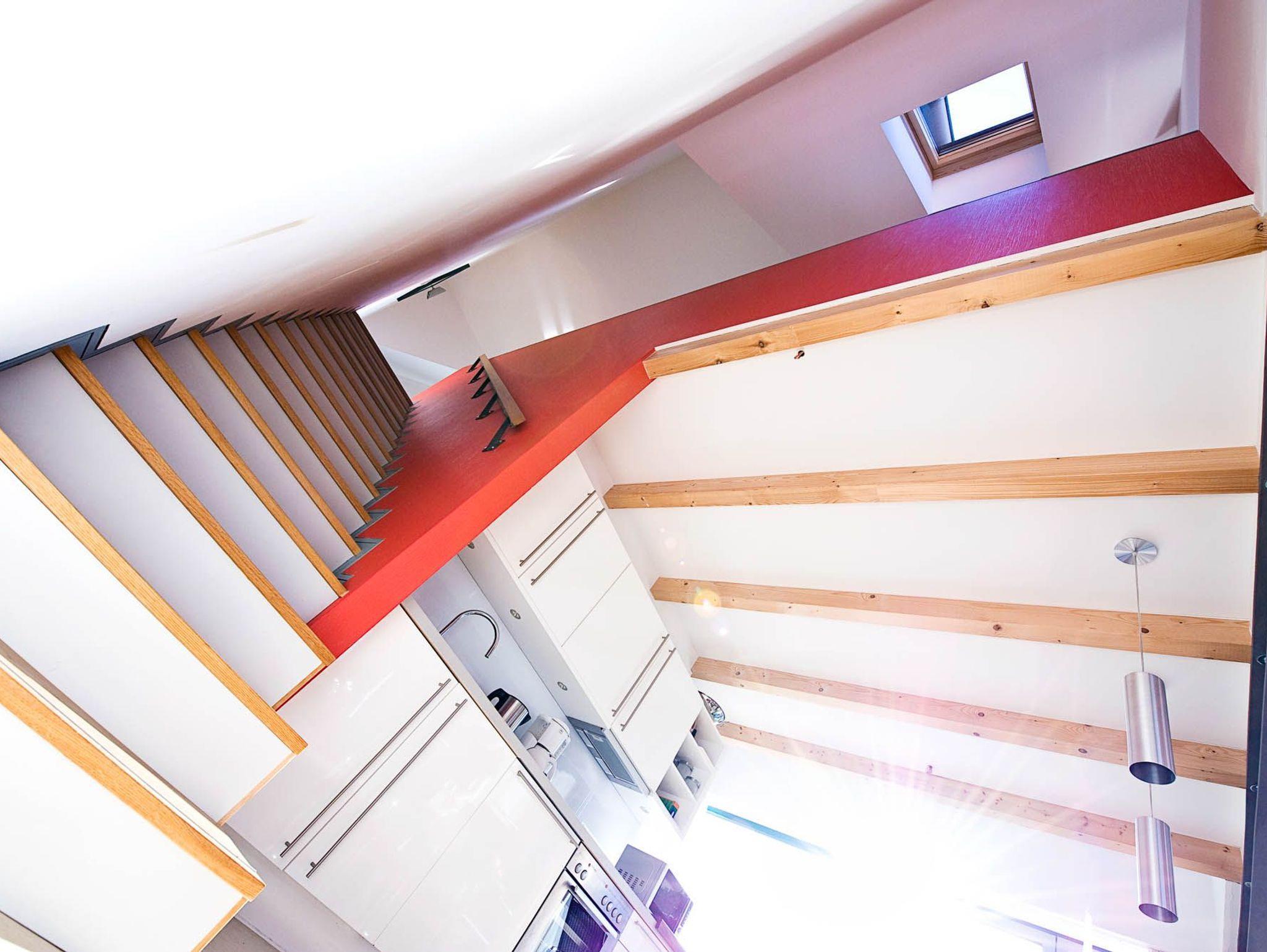 Eine Treppe führt vom Wohn-/ Küchenbereich aus in die 2. Wohnebene, ins Obergeschoss.