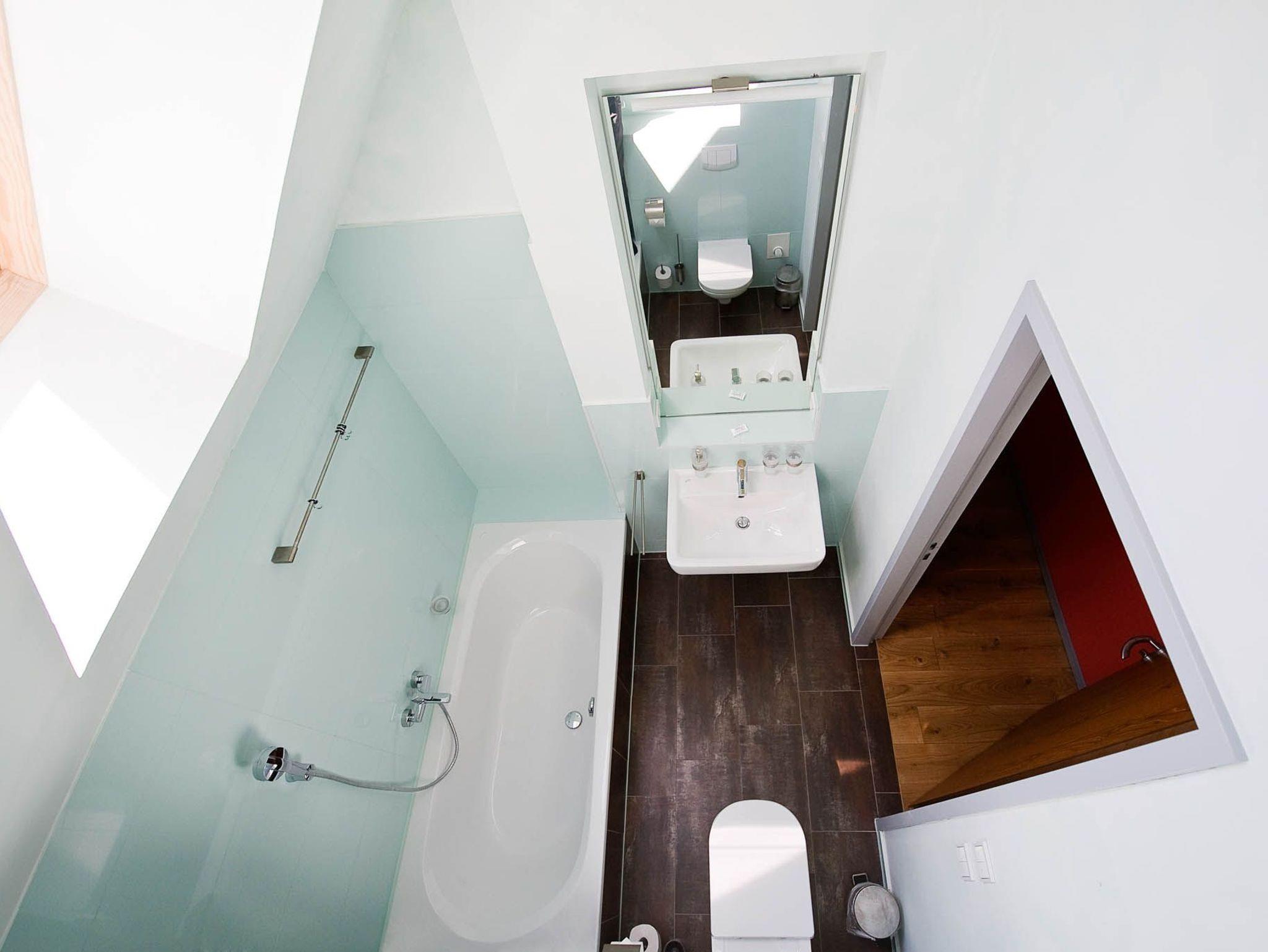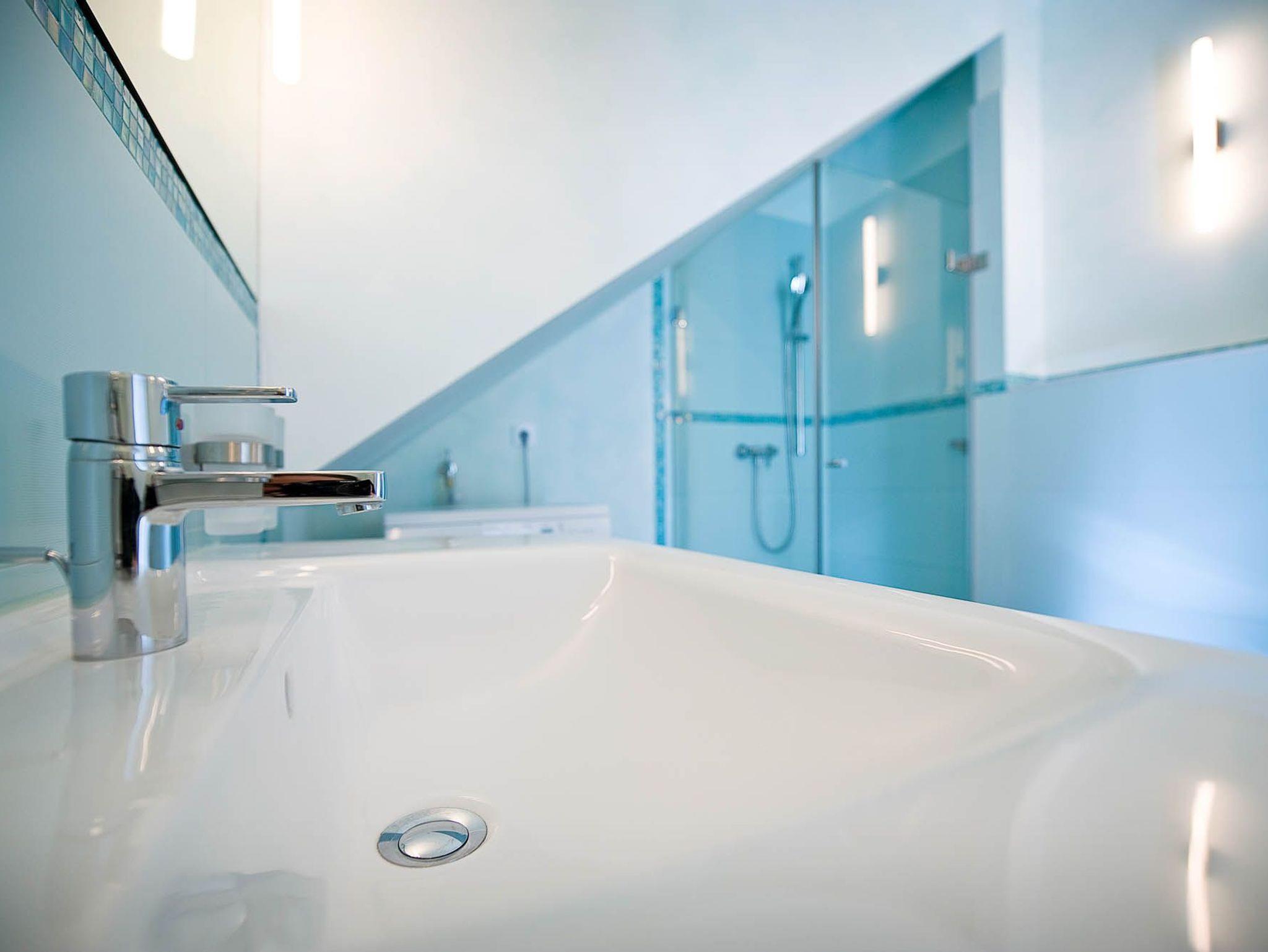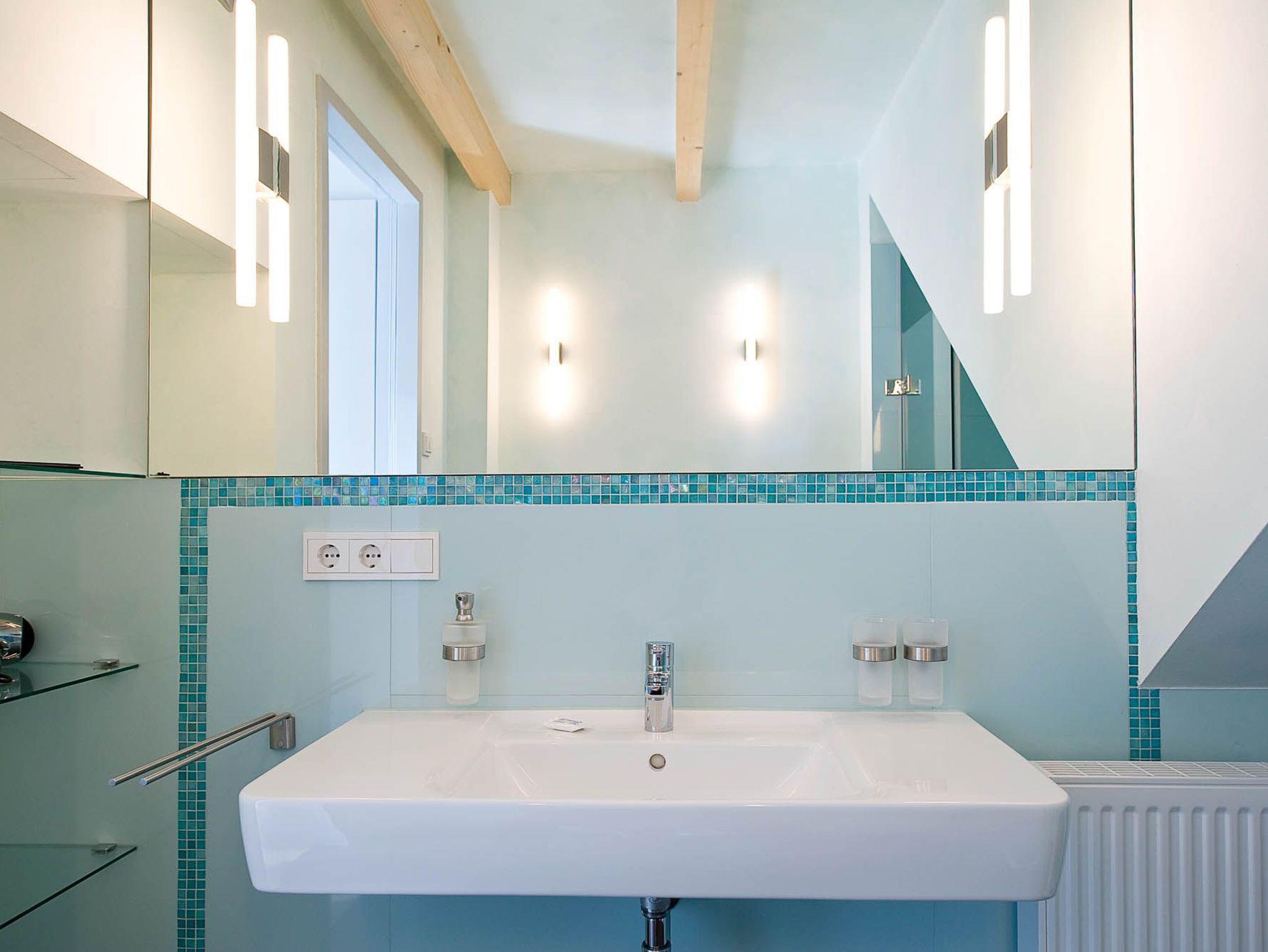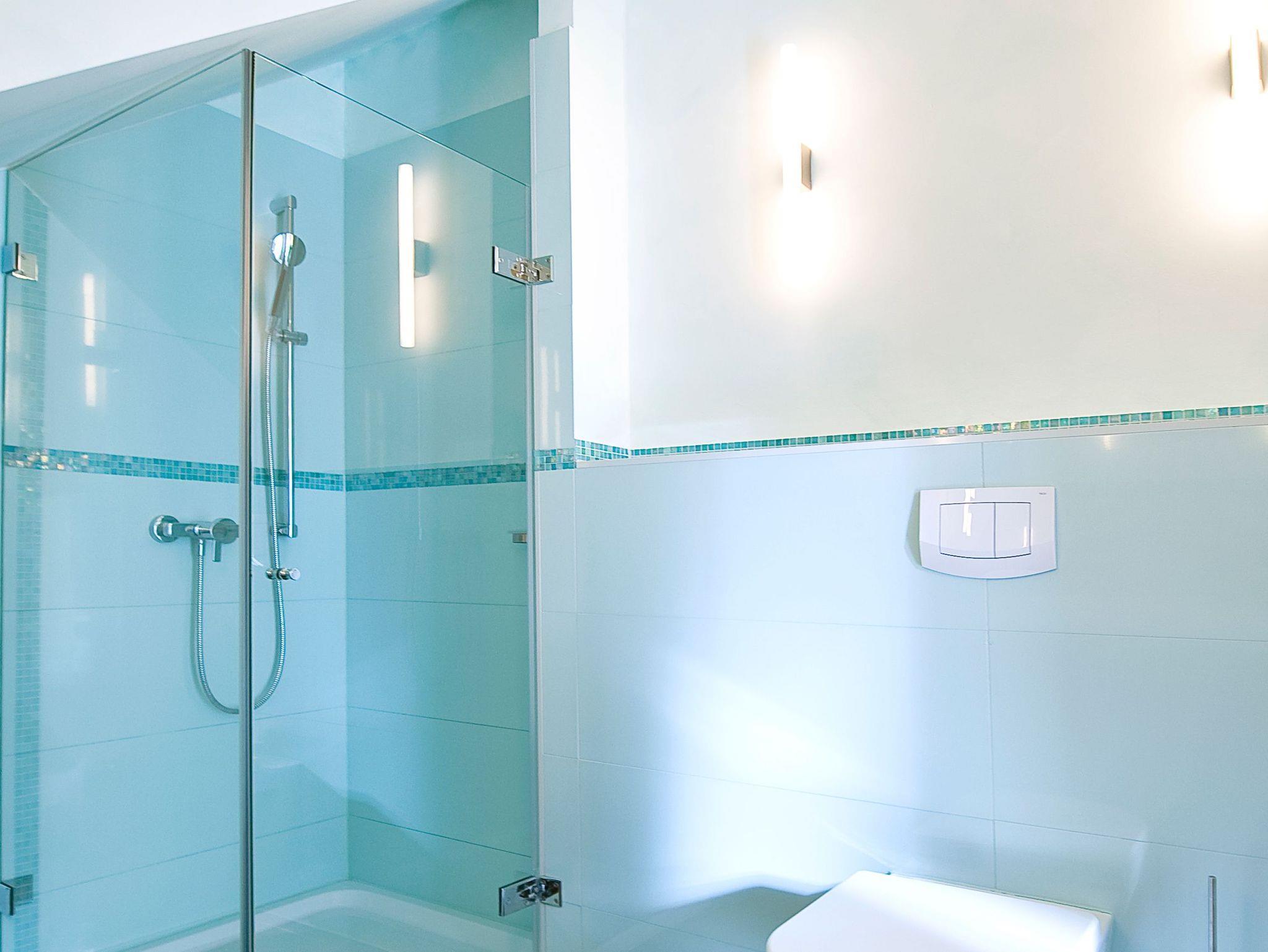 Das moderne Bad auf selbiger Ebene verspricht besten Komfort und ist mit einer Dusche, Waschbecken und WC ausgestattet.