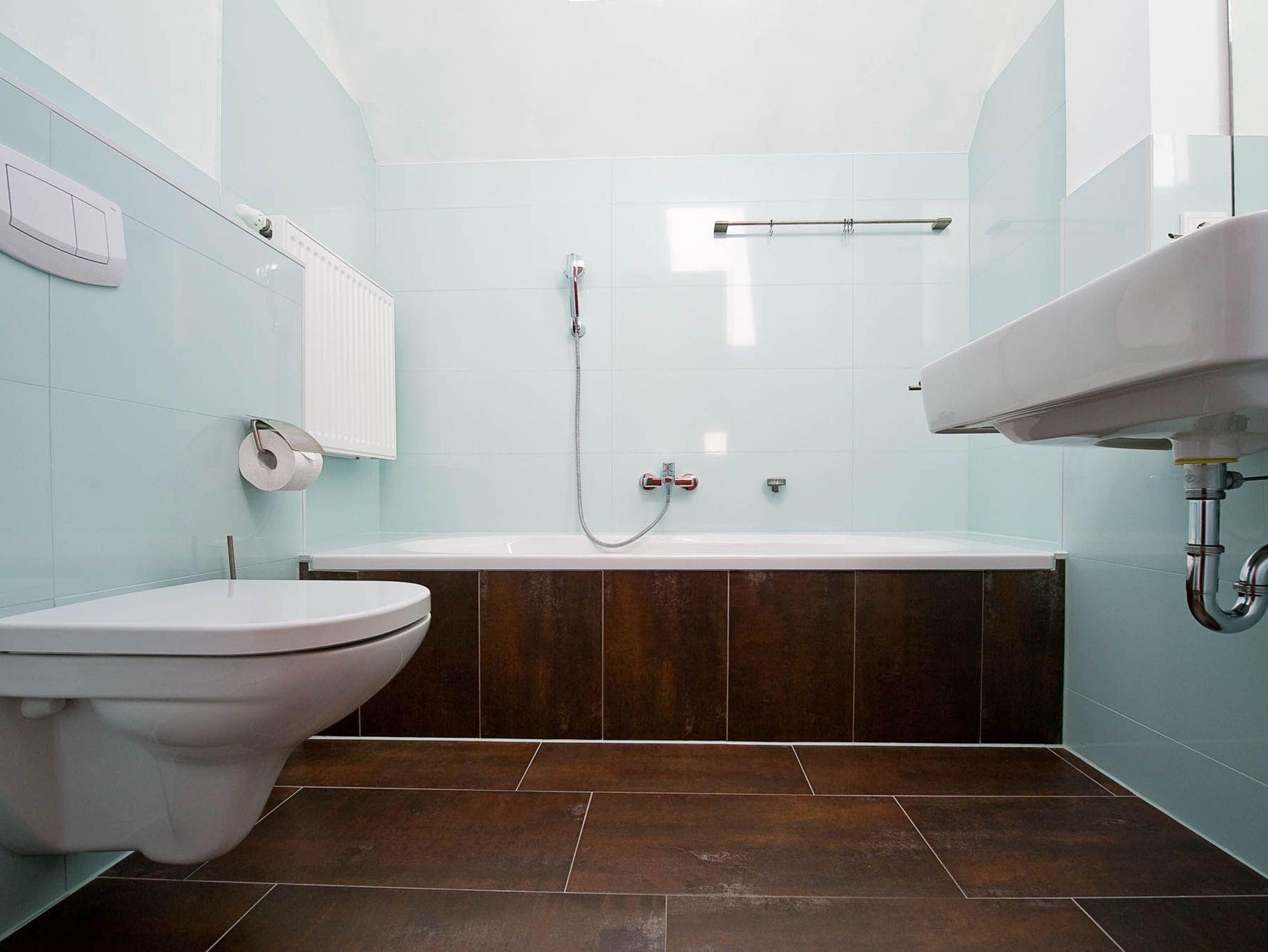 Ebenso finden Sie hier das zweite moderne Badezimmer. Dieses ist mit Badewanne und WC eingerichtet. Das Fenster erhellt diesen Raum zusätzlich mit Tageslicht.