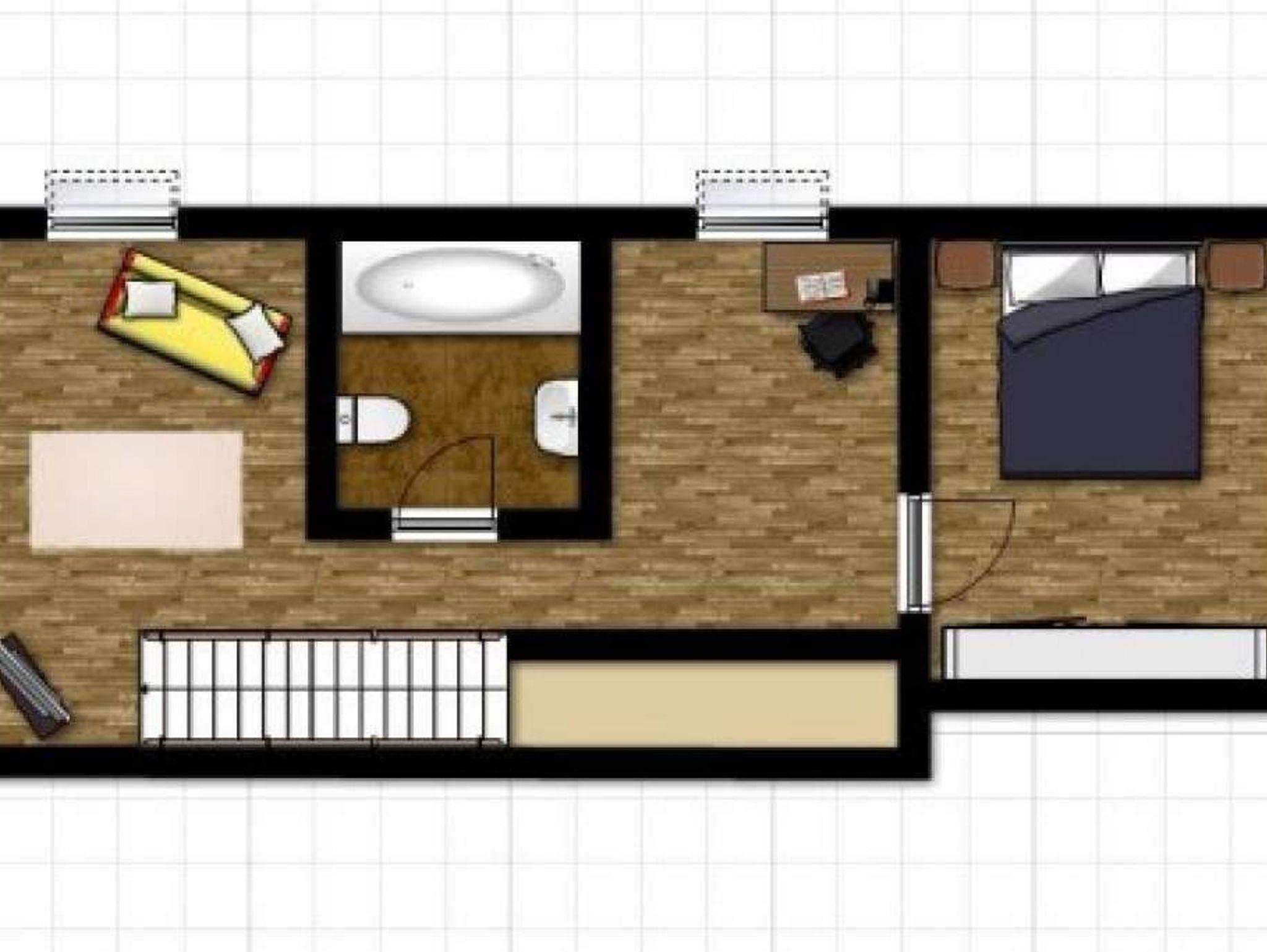 Das zweite Schlafzimmer befindet sich auf diesem Geschoss und bietet ein weiteres komfortables Doppelbett und einen Kleiderschrank.