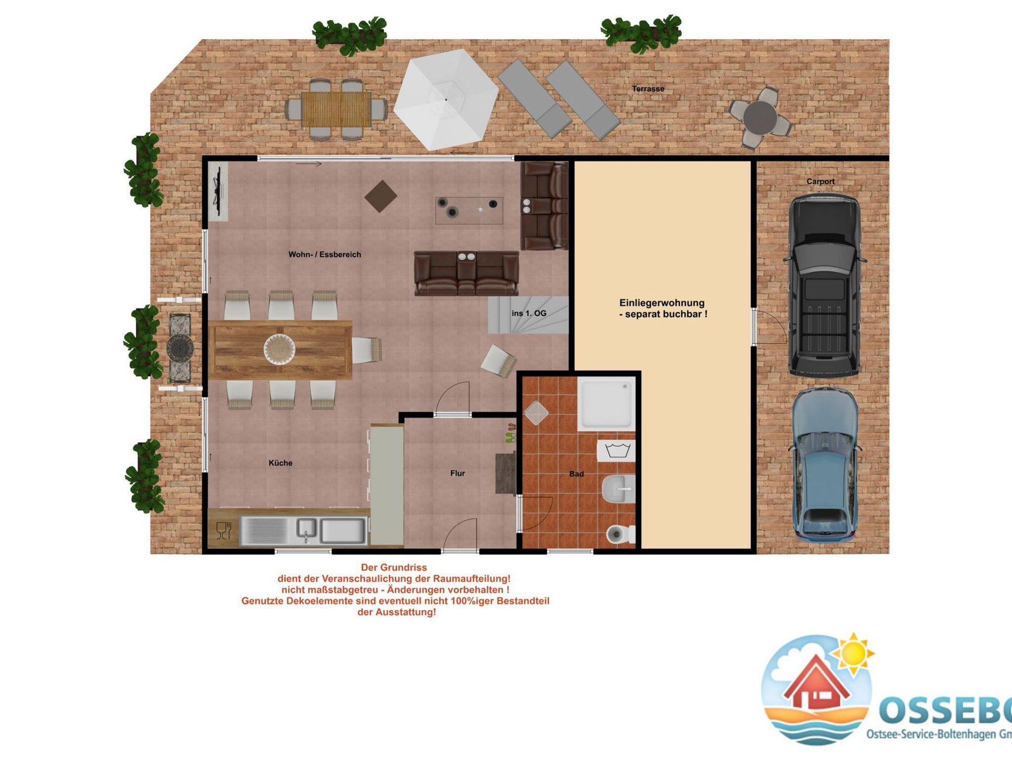 Das Haus bietet zusätzlich eine 2-Zimmer-Einliegerwohnung mit eigenem Eingang für 2 Personen. Buchen Sie diese gern zum Haus dazu (60,00€/ Üb. plus einmalig Roomservice), so dass zusammen mit dem Haus bis zu 8 Personen genug Platz finden. Das Wohnzimmer bietet eine gemütliche Sitzecke und SAT-TV, im Schlafzimmer befindet sich ein Doppelbett. Weiterhin ist die Wohnung mit einem Bad (Du/WC) sowie einer Küchenzeile mit kleiner Essecke ausgestattet. Diese Einlieger-Wohnung ist nur in Verbindung mit dem Haus buchbar.